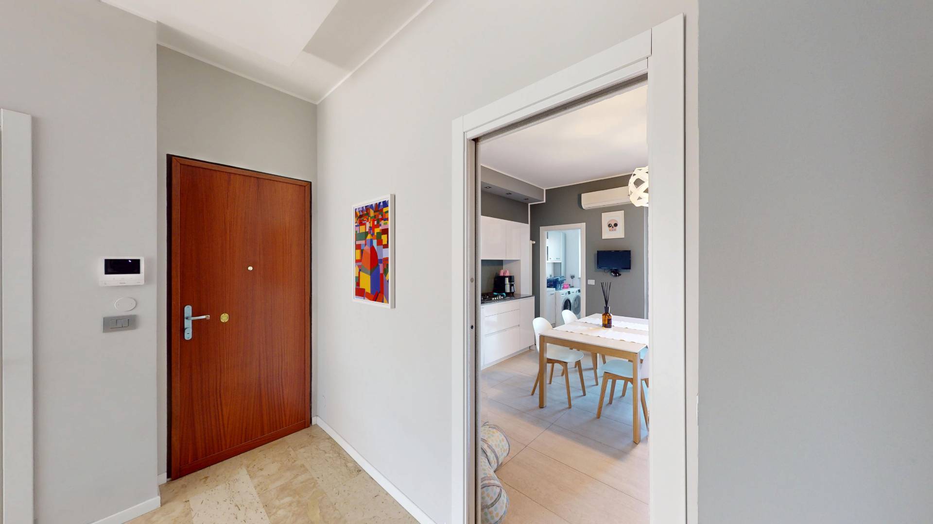 L'appartamento risulta luminoso per tutto l'arco della giornata grazie al piano alto e la doppia esposizione con un ampio balcone che affaccia sul corso e terrazzino con vista aperta.