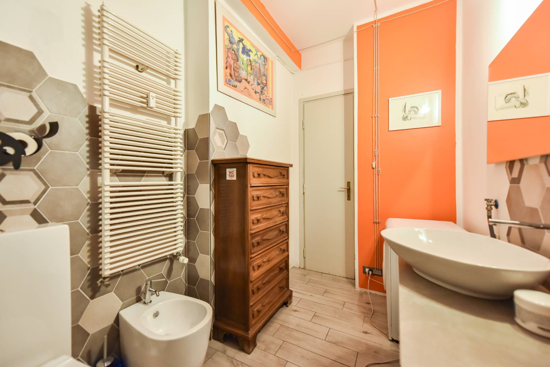 Presente un bagno, di generose dimensione, finestrato grazie alla presenza di un vuoto su pozzo di luce condominiale.