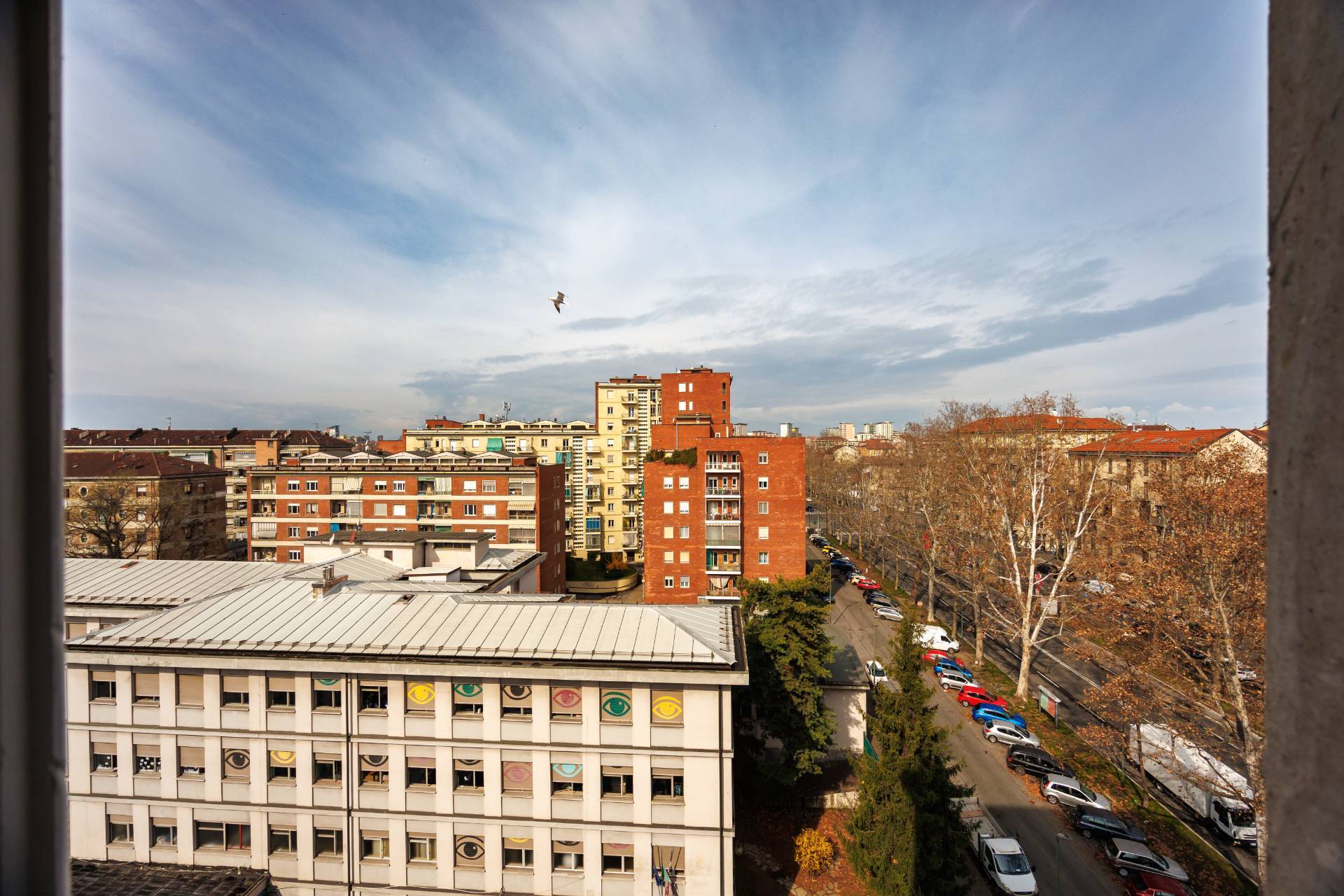 Al settimo piano di uno stabile servito da ascensore, proponiamo in vendita luminoso appartamento composto da ingresso, soggiorno, cucina, due camere da letto e doppi servizi, di cui uno finestrato.