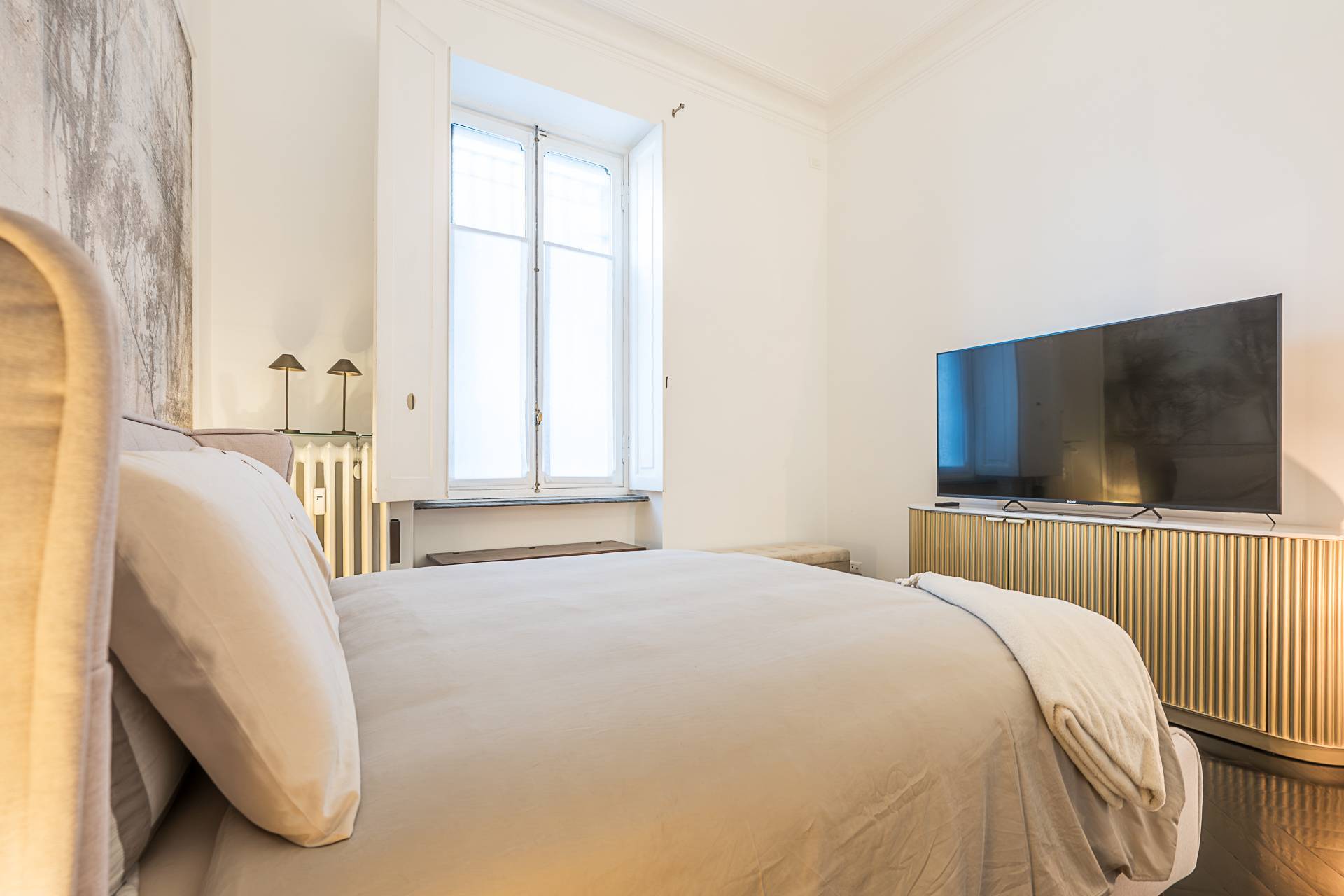 In corso Massimo d'Azeglio, angolo via Monti, all'interno di un elegante stabile d'epoca in perfette condizioni generali, dotato di portineria, al piano rialzato splendido appartamento angolare, recentemente e finemente ristrutturato, completo di tutti gli arredi di altissimo standard, composto da ingresso, salone angolare, cucina abitabile con arredi di design, ampia camera matrimoniale, raffinata camera armadi eventualmente trasformabile in seconda camera, elegante bagno con ampia doccia e lavabo in pietra, secondo bagno di servizio adibito a lavanderia con finestra sul vano scale.