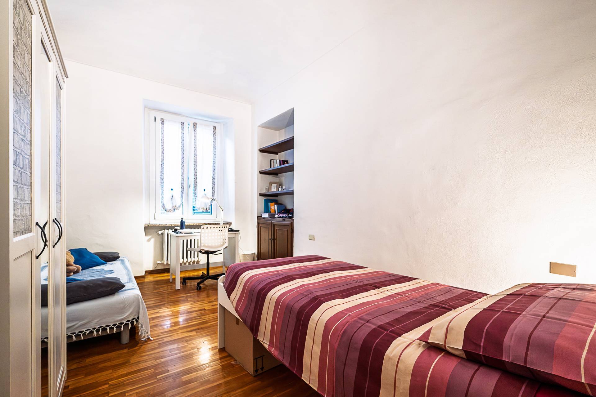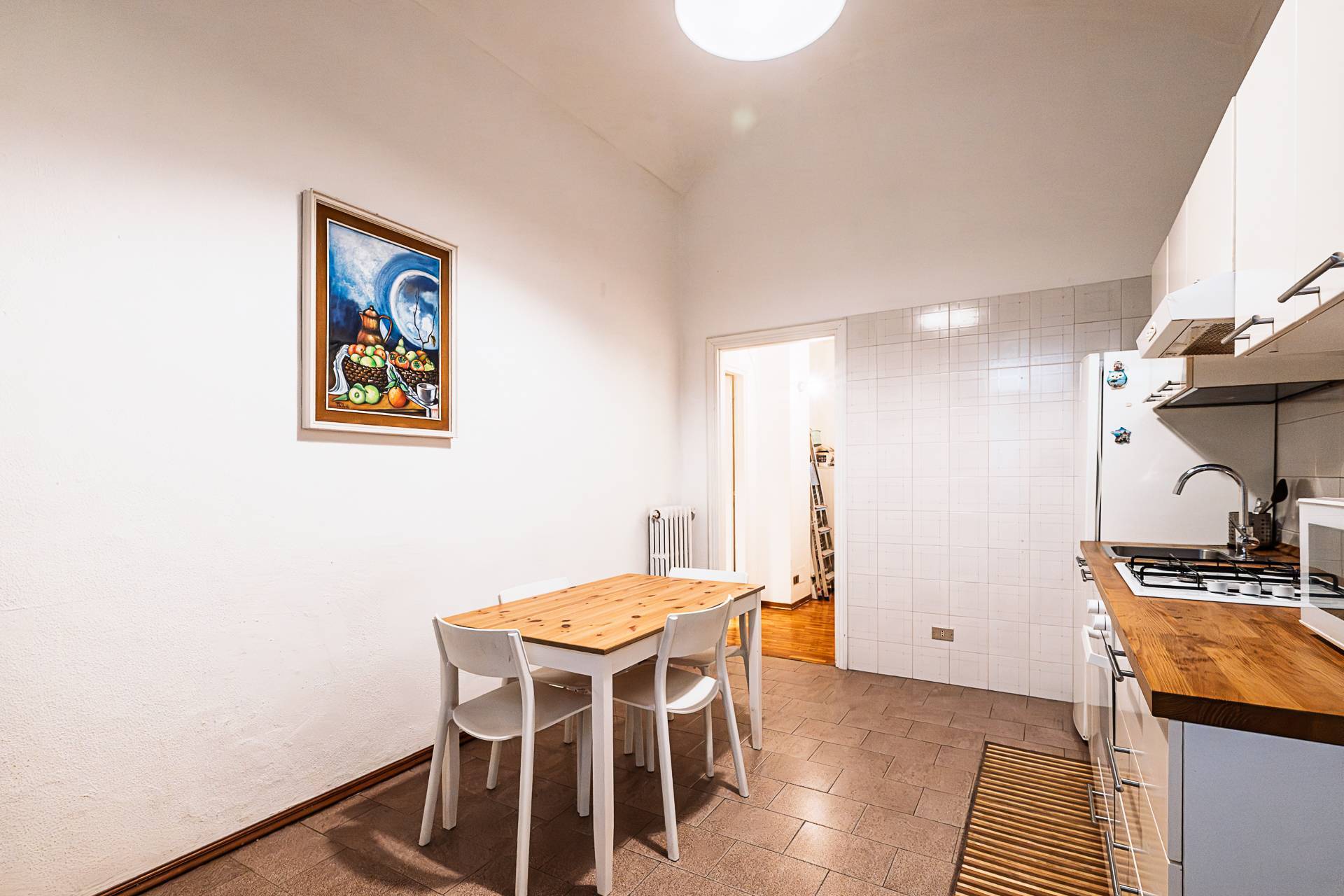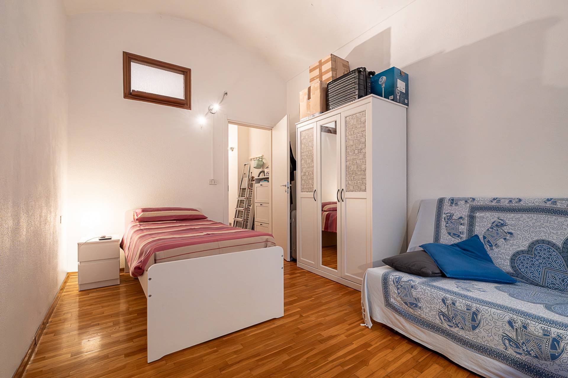 Lappartamento conserva il fascino delle architetture originali, con soffitti alti e a volta che si integrano armoniosamente con la distribuzione degli spazi, rendendolo accogliente e versatile.