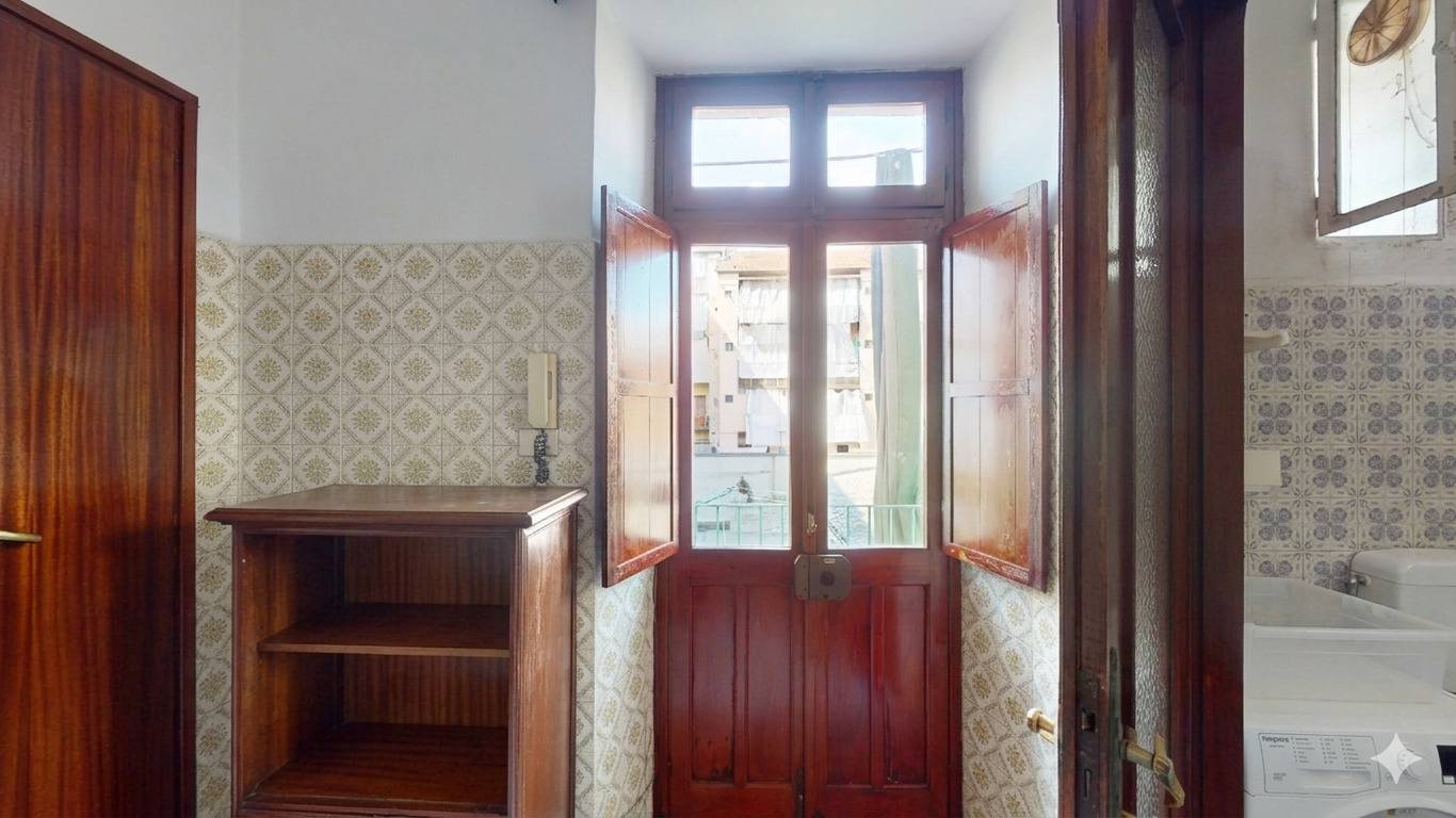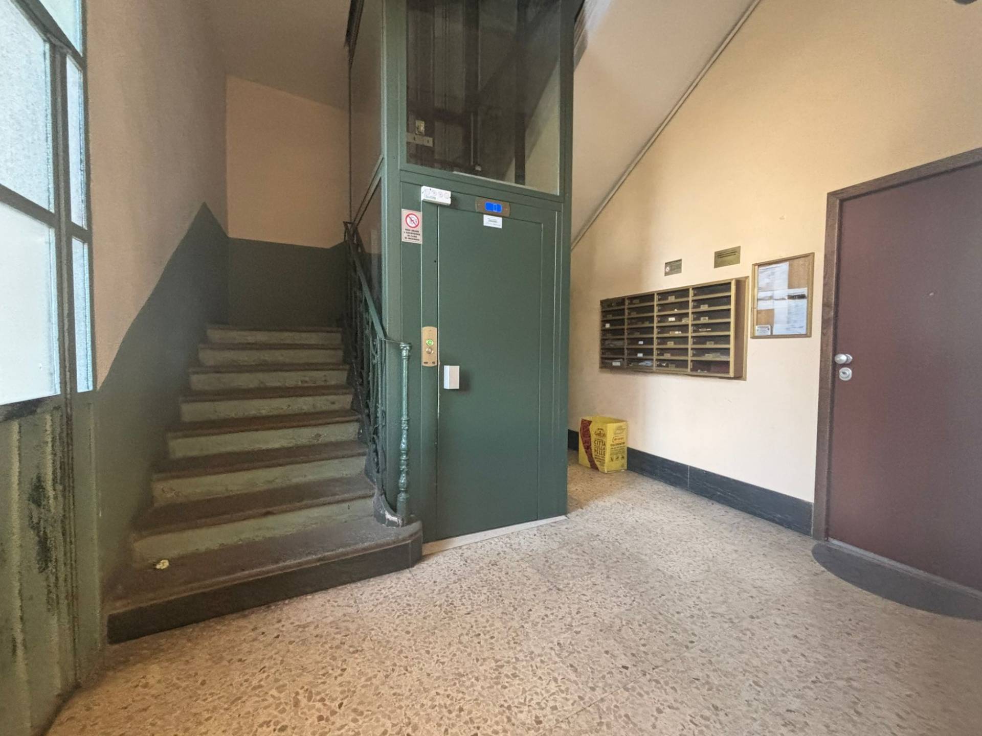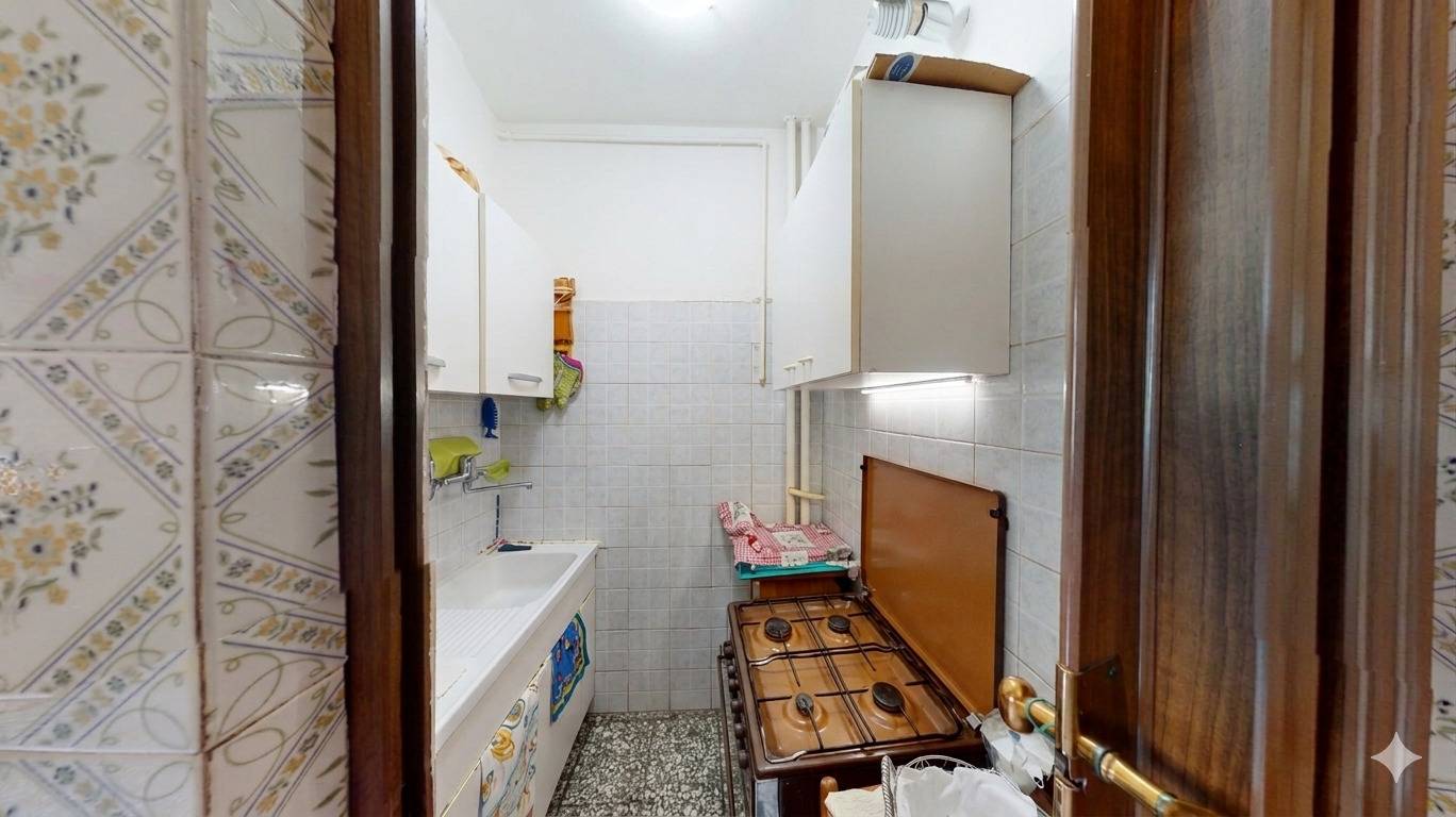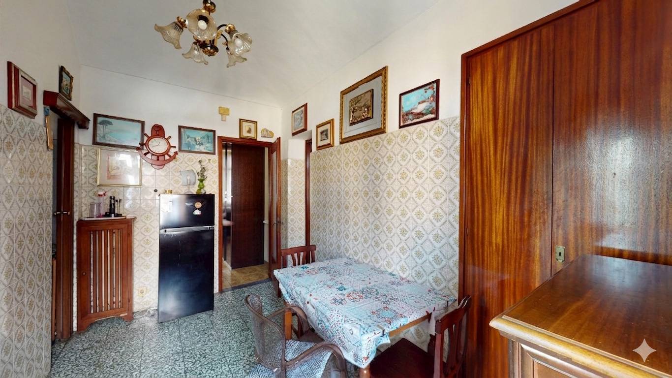 L'immobile, con accesso da ballatoio, composto da ingresso su zona giorno costituita da tinello e cucinino, due camere da letto e bagno.
