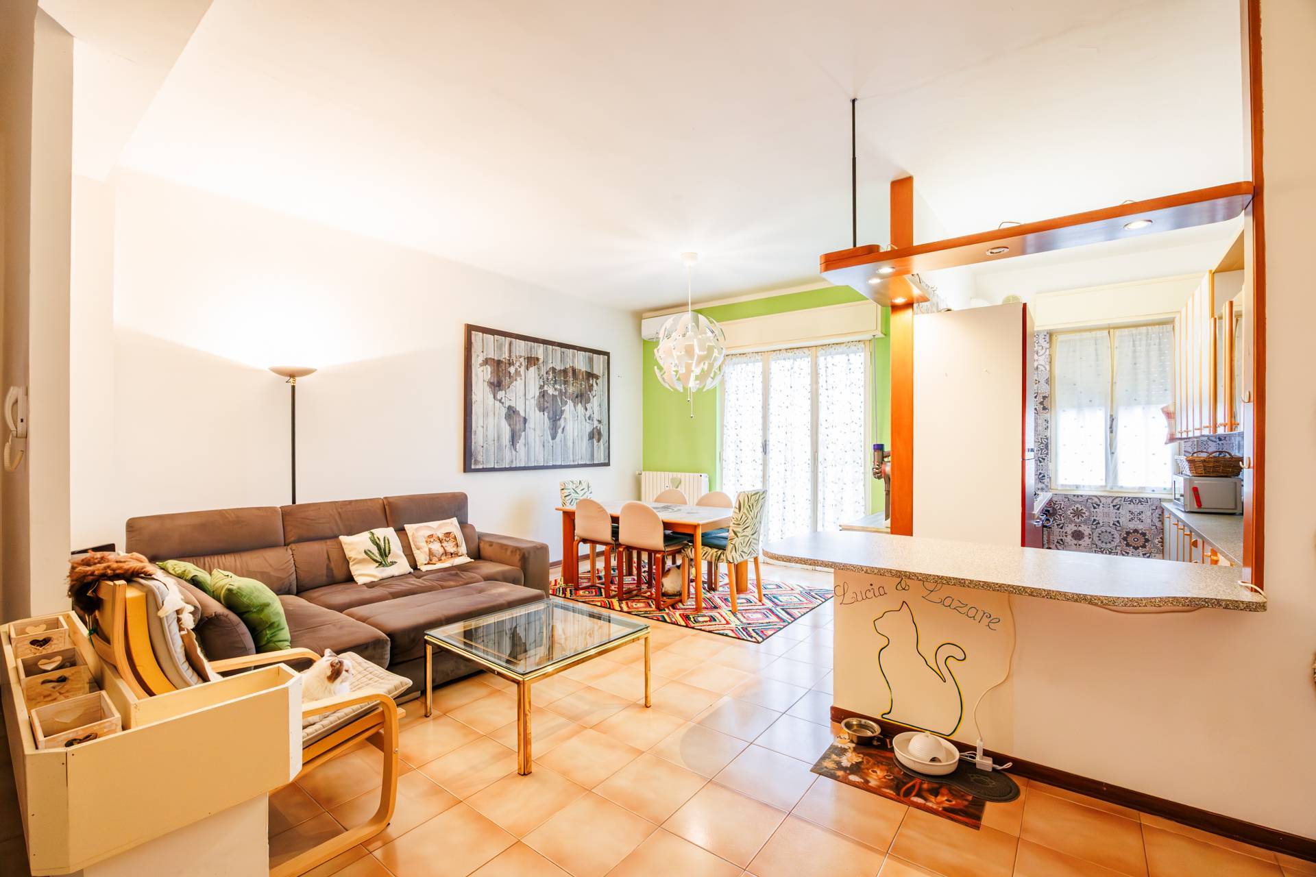 L'appartamento si trova al terzo piano e mezzo di una palazzina anni settanta, composto da ingresso, ampio soggiorno con uscita sul primo balcone con vista panoramica, cucina abitabile in semi open space con bancone, due camere da letto una delle quali con uscita sul secondo balcone e bagno finestrato.