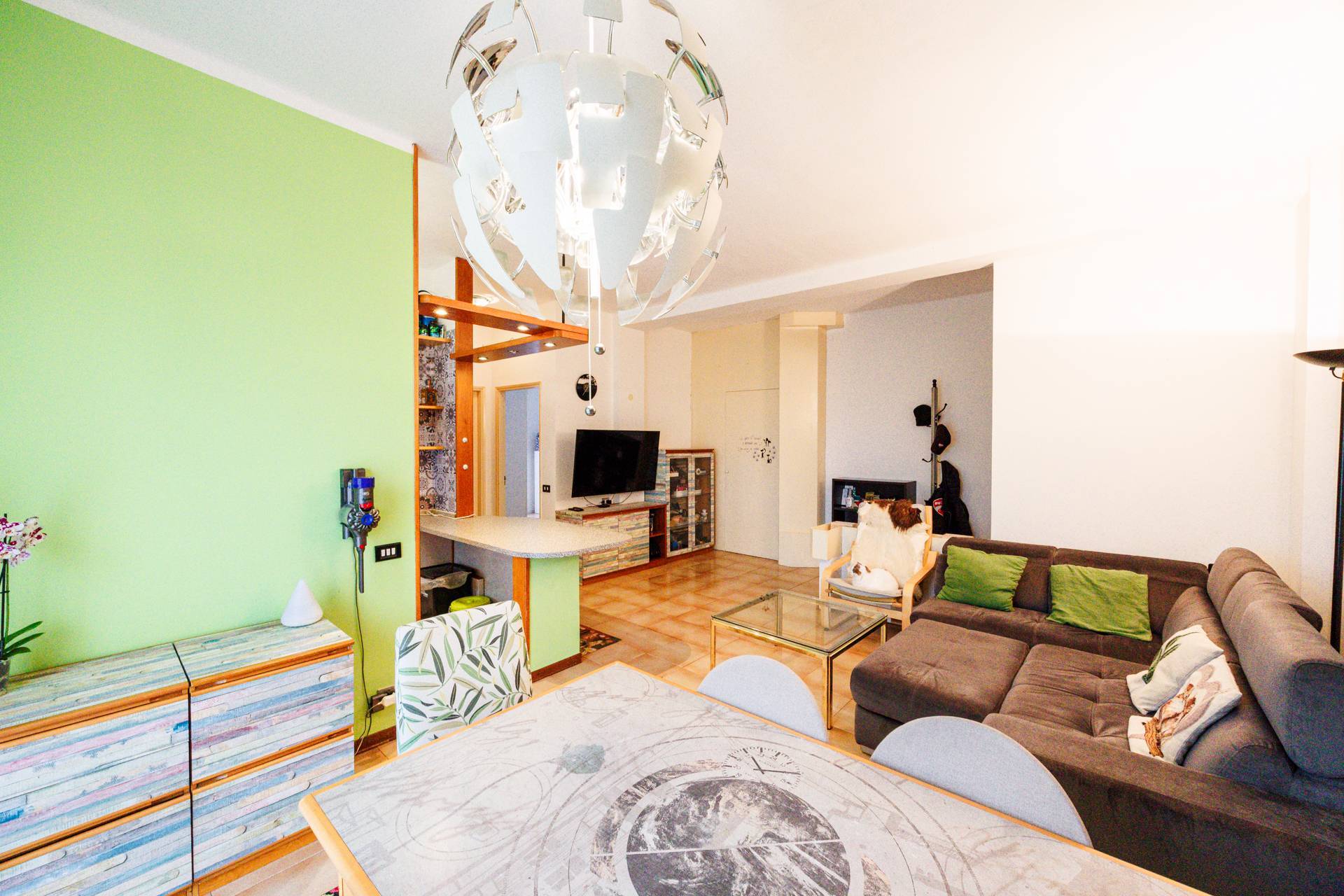 L'appartamento si trova al terzo piano e mezzo di una palazzina anni settanta, composto da ingresso, ampio soggiorno con uscita sul primo balcone con vista panoramica, cucina abitabile in semi open space con bancone, due camere da letto una delle quali con uscita sul secondo balcone e bagno finestrato.