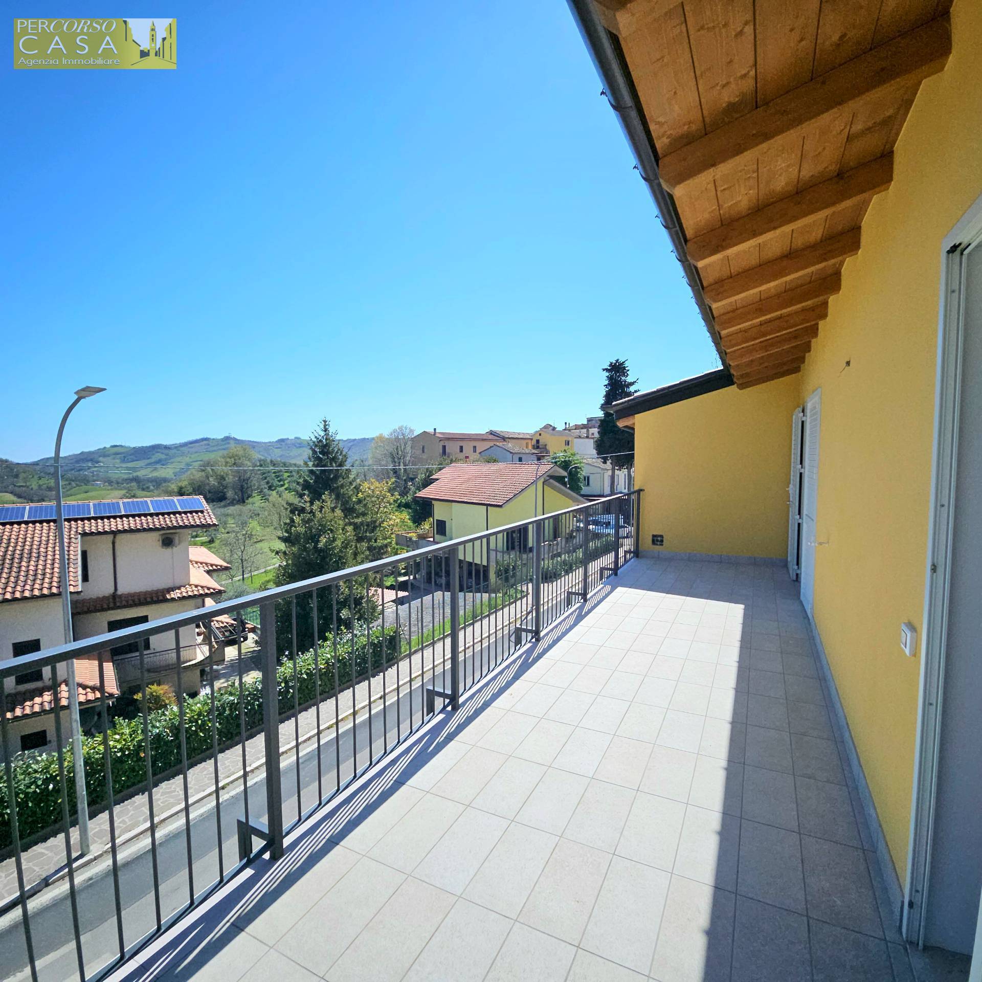 TORRICELLA SICURA (Piano Grande) - NUOVA COSTRUZIONE - FABBRICATO con 2 APPARTAMENTI INDIPENDENTI - IMPIANTO FOTOVOLTAICO - NO COSTI CONDOMINIALI + possibilita' acquisto LOTTO EDIFICABILE ADIACENTE di Mq. 1920 con MANUFATTO - IN VENDITA . (Rif. V4138A) POSSIBILITA' DI ACQUISTO DI UN SINGOLO APPARTAMENTO O INTERO STABILE CIELO TERRA costituito da: 2 appartamenti con tutte le pertinenze (giardino - area esterna - 4 posti auto - 2 box auto e 2 cantine) al prezzo complessivo di ? 385.000 + lotto edificabile (? 50.000) 1) PIANO PRIMO - APPARTAMENTO CON GIARDINO di Mq. 100 circa composto da ampia zona giorno con terrazzo panoramico, cucina a vista abitabile con possibilit di chiusura, disimpegno, tre camere (una matrimoniale e due singole), due bagni, balcone, corte esterna pavimentata e giardino.