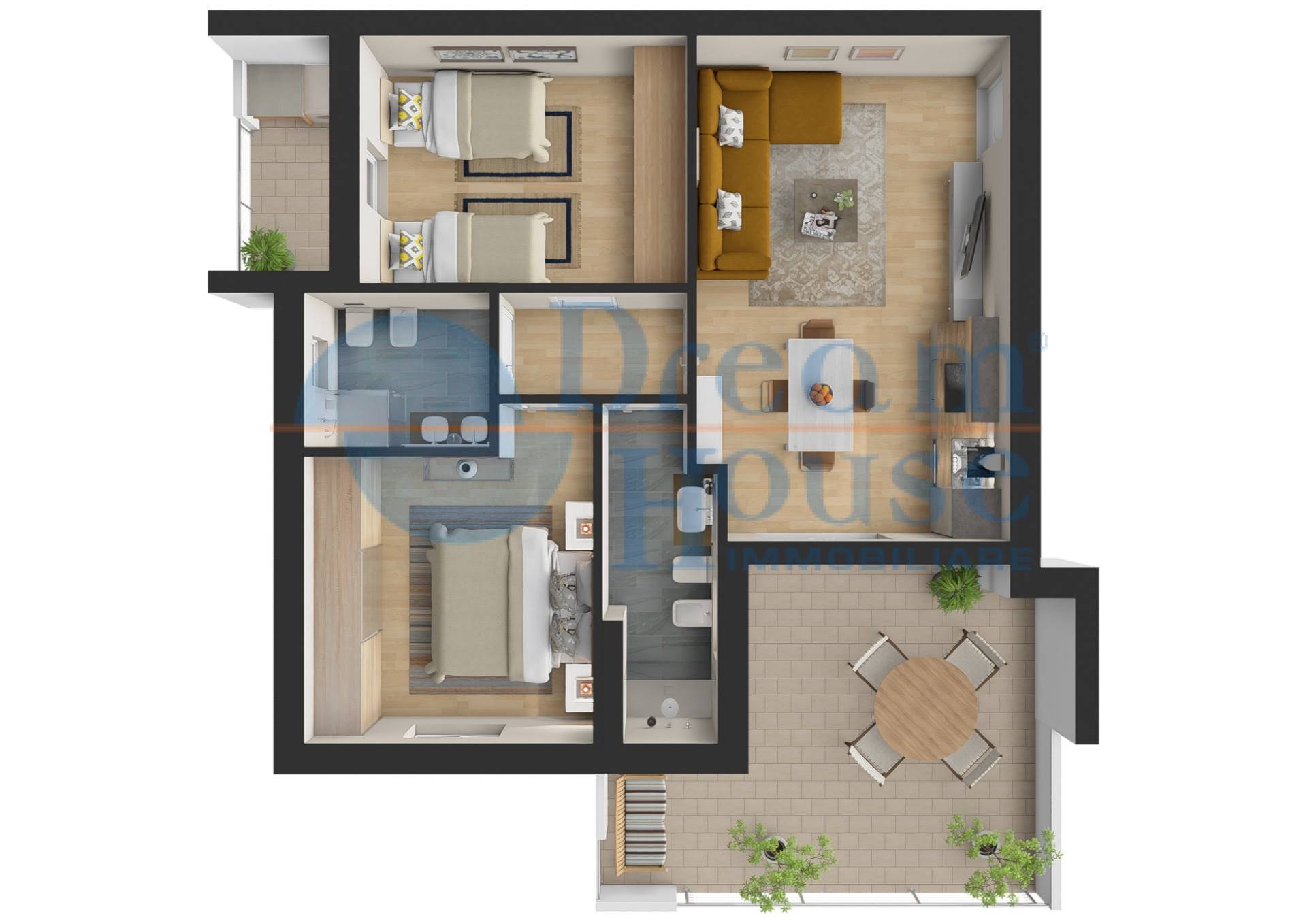 • Locali: 3 Locali (2 camere con doppi servizi)
