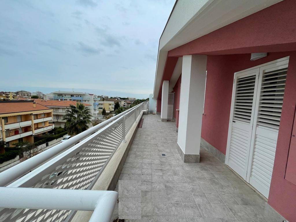 In zona ben servita e residenziale, vendiamo attico al quarto ed ultimo piano servito da ascensore, composto da ingresso su soggiorno e cucina, con uscita su ampio e spettacolare terrazzo vista mare, bagno di servizio nella zona giorno, disimpegno zona notte, bagno con finestra ampio e comodo e due camere doppie.