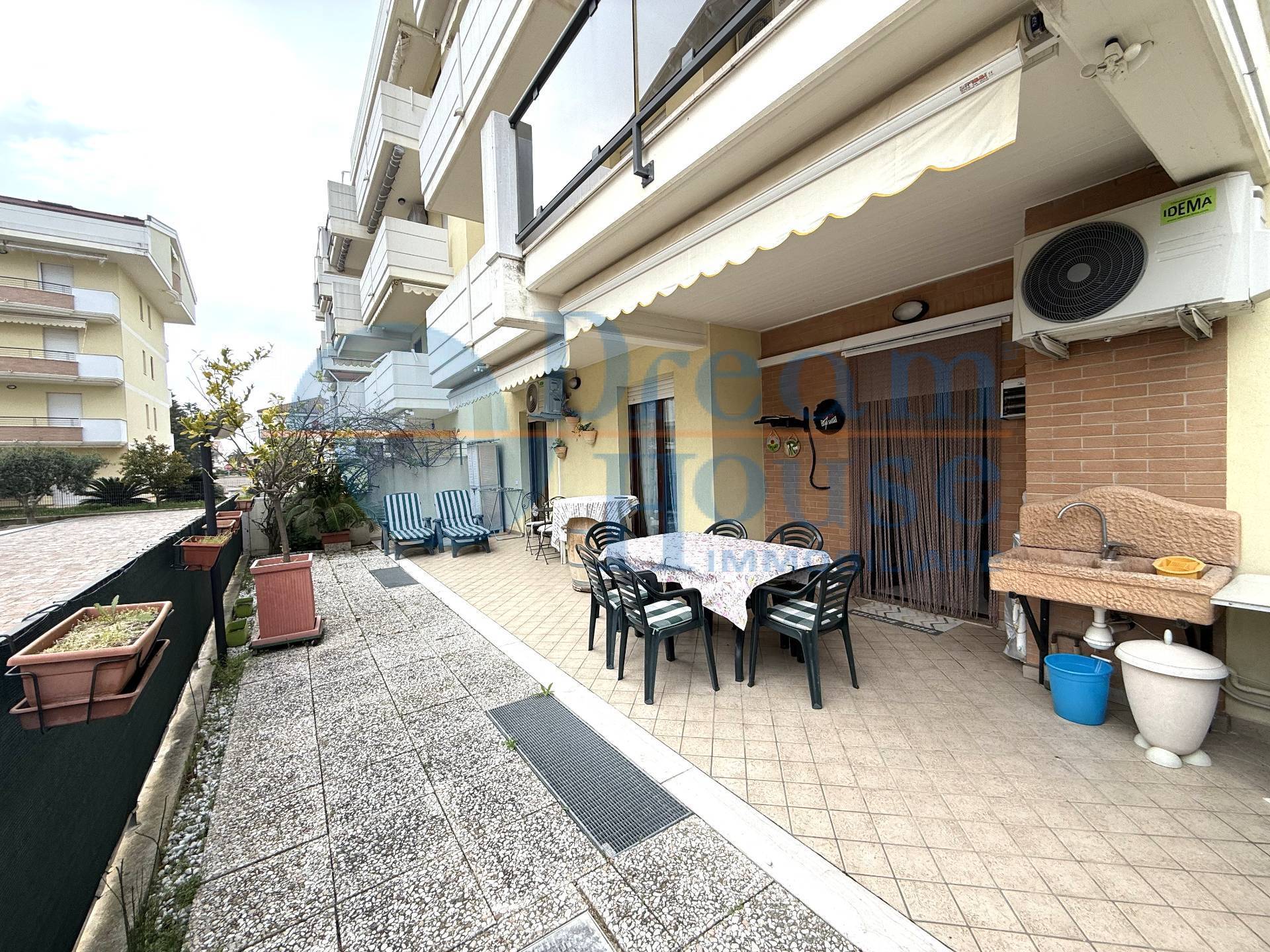 Appartamento con ampio spazio esterno a 250 mt dal mare Tortoreto Lido Nel cuore di Tortoreto Lido, in una traversa di Via Aldo Moro, una delle zone pi apprezzate e servite della localit, proponiamo in vendita un appartamento al piano terra inserito in una palazzina di recente costruzione, a soli 250 metri dal mare. Limmobile si presenta in ottime condizioni, pronto per essere abitato fin da subito, e accoglie con un comodo soggiorno con angolo cottura, uno spazio funzionale e luminoso che si apre direttamente verso lesterno.