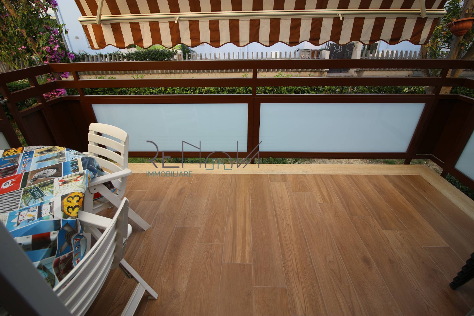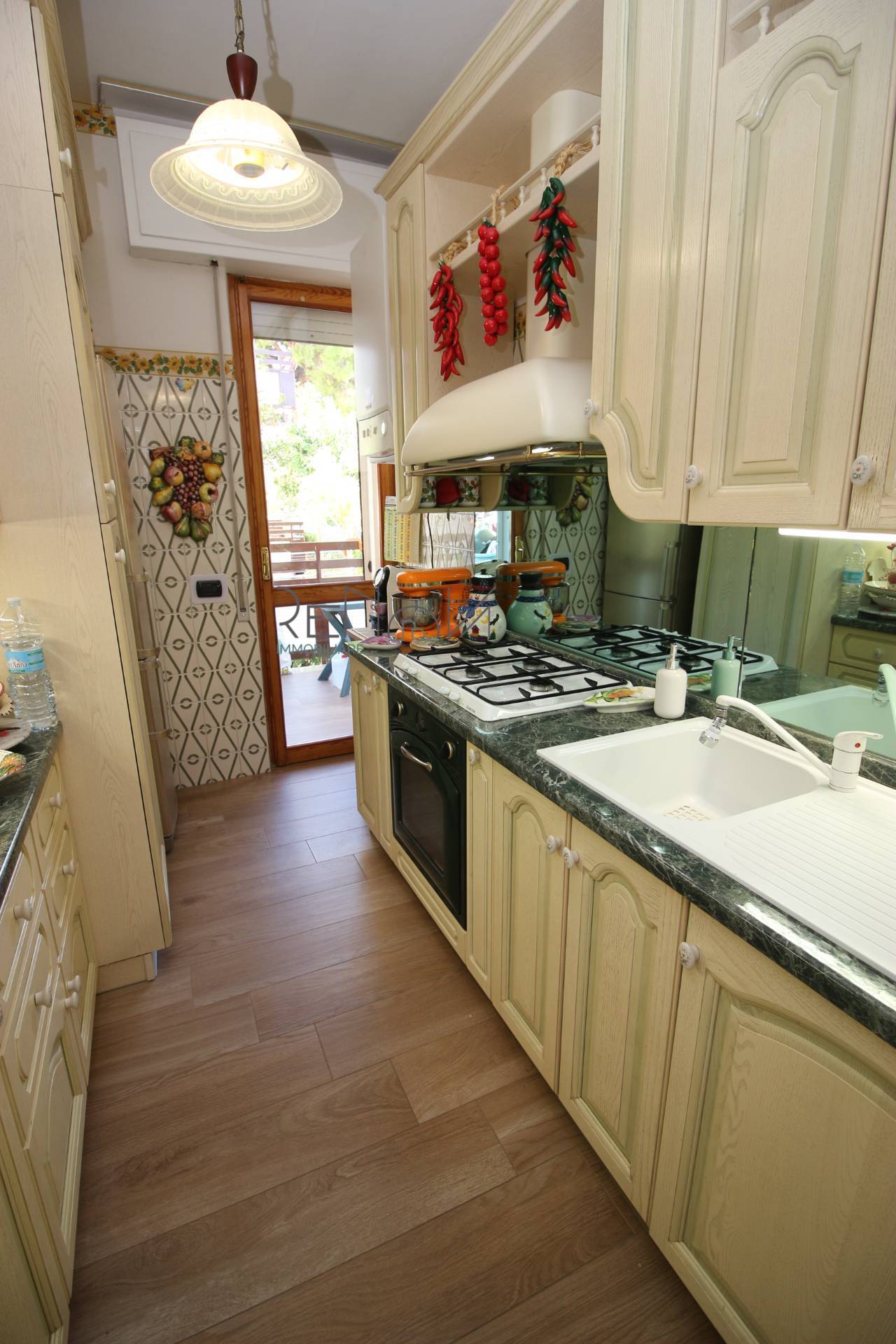 L'immobile servito da impianto di aria condizionata e infissi in legno con zanzariere ed inferriate.