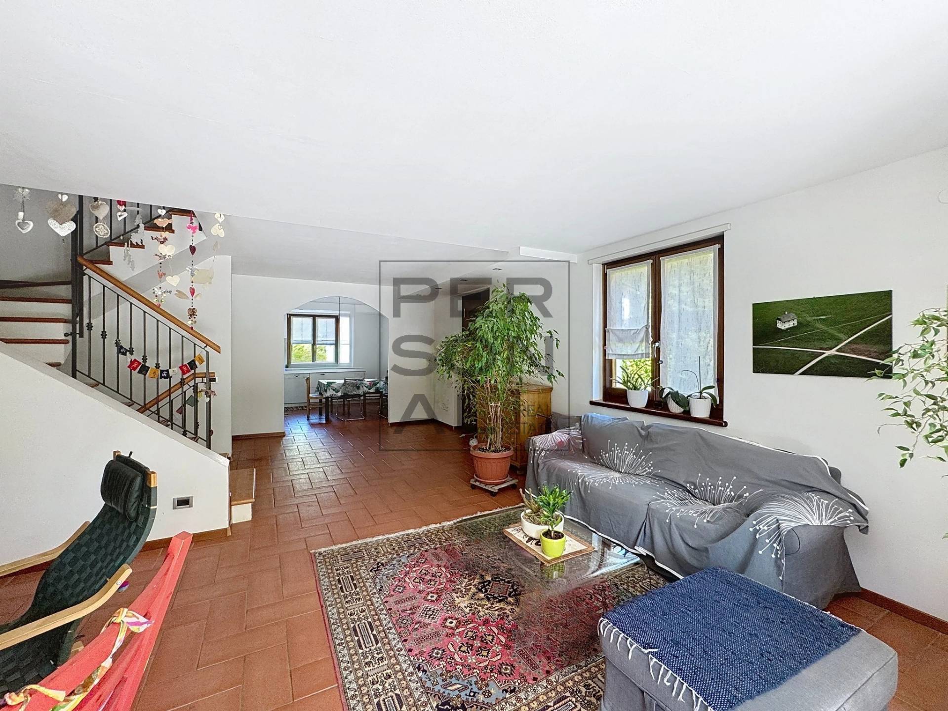 Al piano SEMINTERRATO due CANTINE, un RIPOSTIGLIO, una STUBE arredata ed una zona GARAGE di ca. 80 MQ.I locali a piano seminterrato sono tutti dotati di INTERCAPEDINE areata.