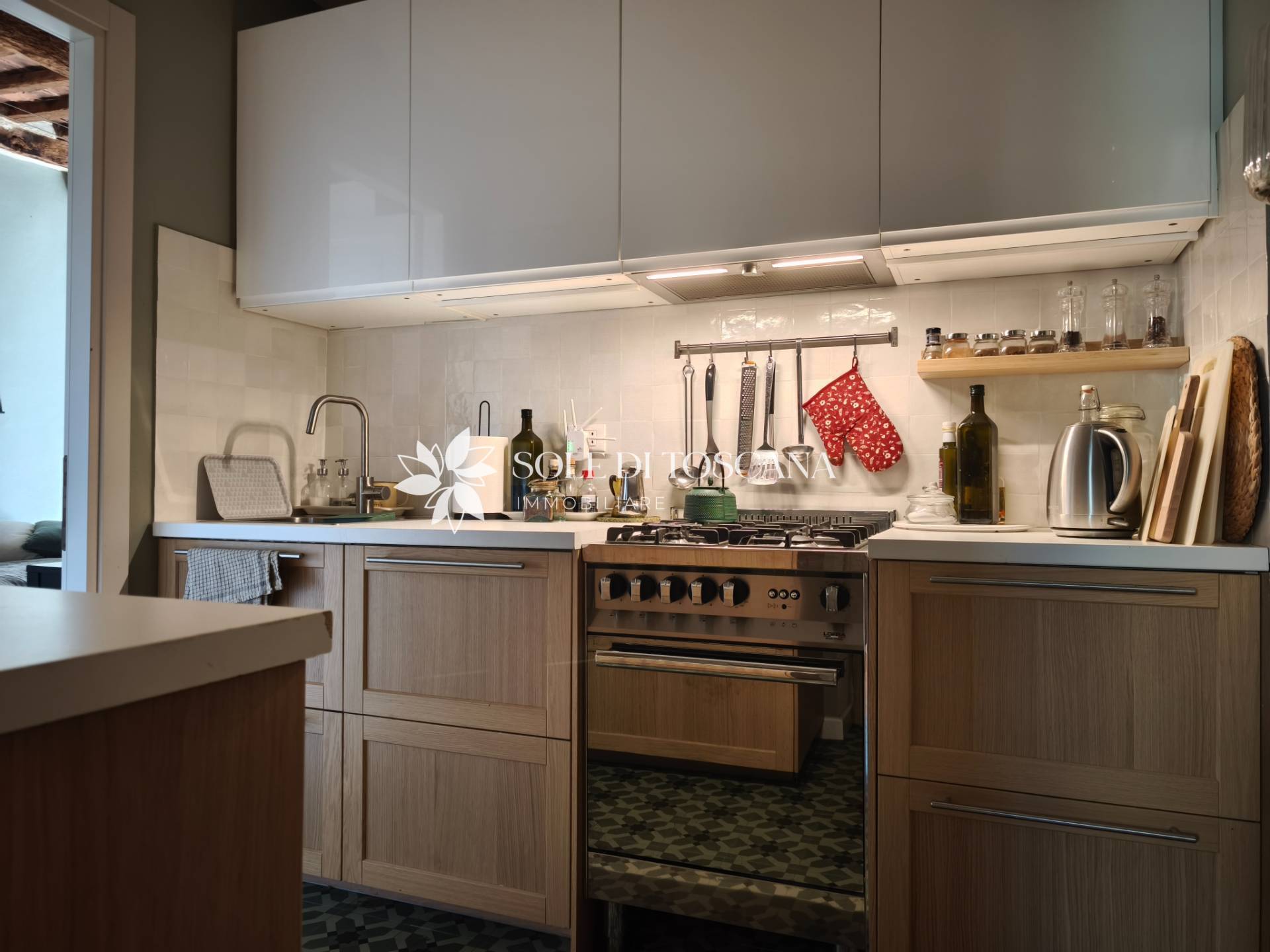 Labitazione combina il fascino dei dettagli storici con il comfort moderno: soffitti antichi sabbiati, porte e persiane originali restaurate, pavimenti e impianti completamente nuovi.