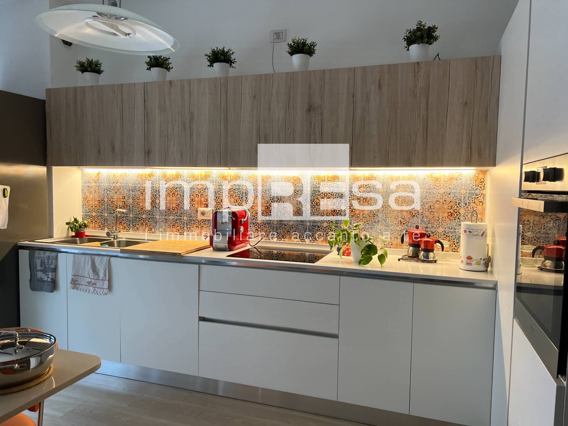 Composto da ingresso, soggiorno con cottura, tre camere e due bagni, due terrazze, e magazzino al piano sesto.