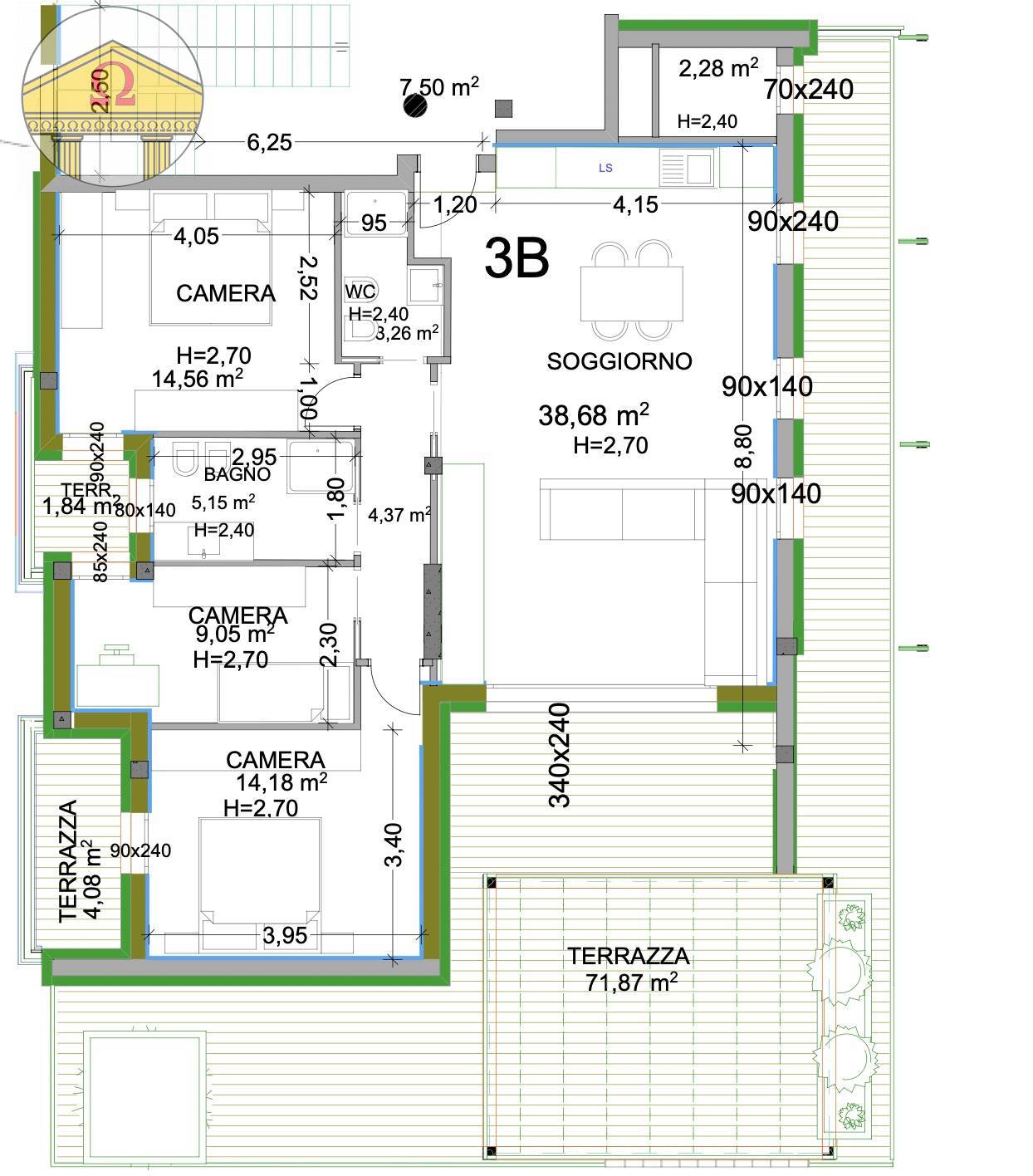 TREVISO SANTA BONA - appartamento con terrazza abitabile di mq. 71 dotata di pompeiana, piano primo di nuova costruzione, libero su tre lati e cos composto: spazioso soggiorno-cucina di mq. 38, tre camere, due bagni e ripostiglio/C.T.. Completo di garage al piano terra e posto auto esterno.