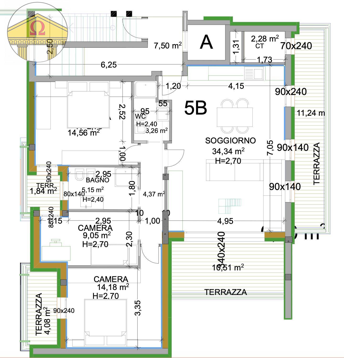 TREVISO SANTA BONA - appartamento di mq.130 con terrazzo abitabile, piano secondo di nuova costruzione, libero su tre lati e cos composto: spazioso soggiorno-cucina con affaccio sul terrazzo abitabile, tre camere, due bagni, ulteriori tre terrazzi e ripostiglio/C.T. Completo di garage al piano terra e posto auto esterno.