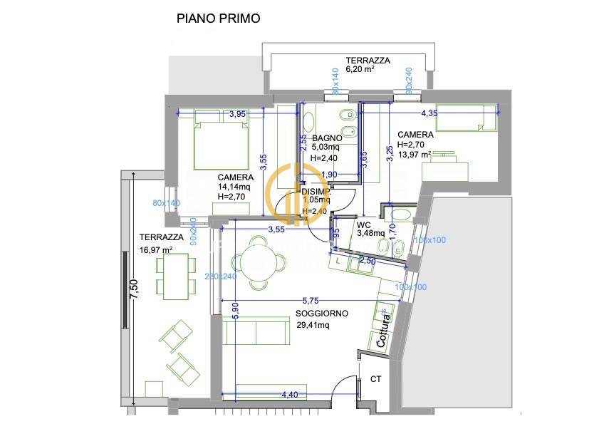 Labitazione si distingue per una luminosissima zona giorno di 29 mq, due camere da letto di cui una con bagno dedicato, un'altro bagno e un ampio terrazzo di 17 mq, ideale per momenti di relax o convivialit allaperto.