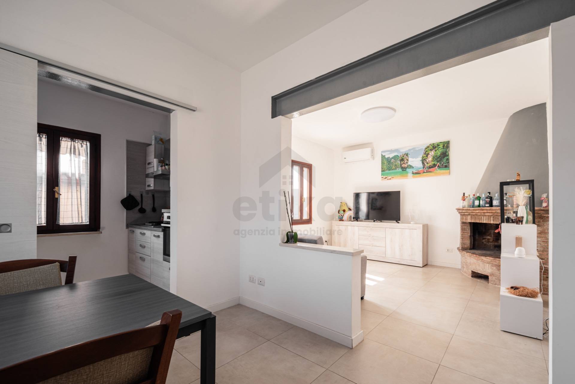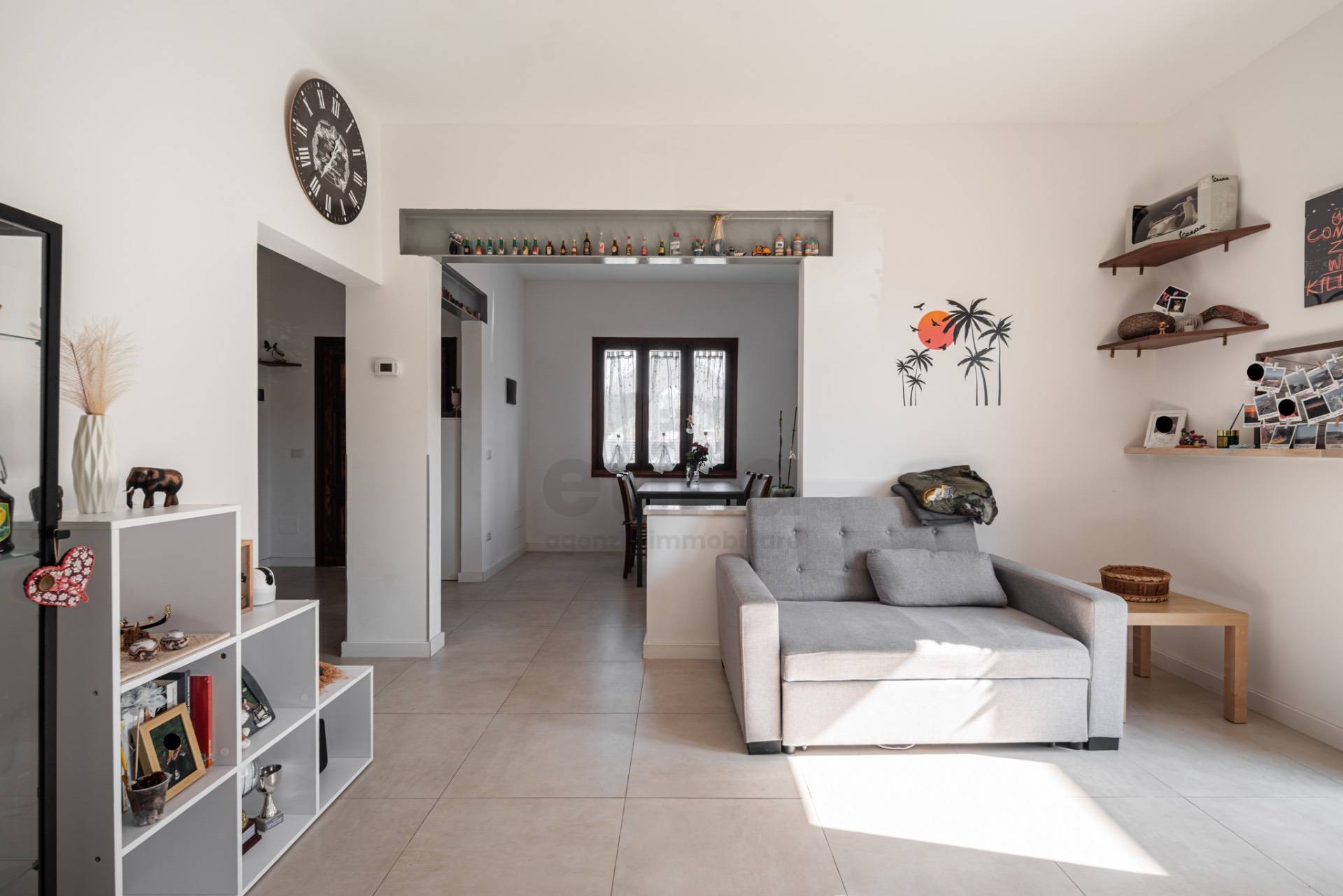 Entrando, si viene accolti da una zona giorno luminosa e accogliente, con il soggiorno che dialoga armoniosamente con la cucina, separata ma ben integrata nellambiente.