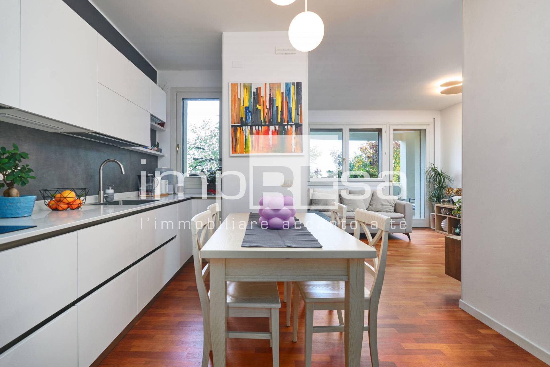 L'immobile situato al 2° piano, ed cos disposto: ingresso nella zona giorno con la cucina a vista, e affaccio su una bella terrazza abitabile vista fiume; nella zona notte un comodo disimpegno con armadio a muro, il bagno e la camera matrimoniale.