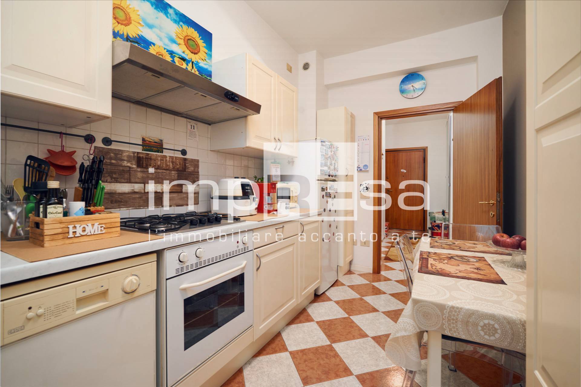 Gli spazi sono generosi, ingresso, cucina separata, soggiorno dal quale si accede alla veranda, due camere matrimoniali, bagno e un comodo ripostiglio dove stata ricavata la lavanderia.