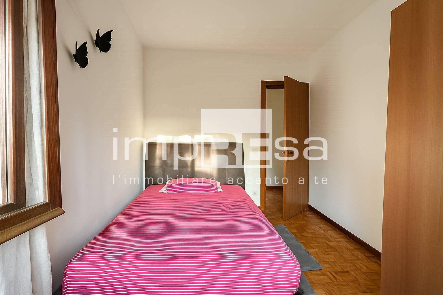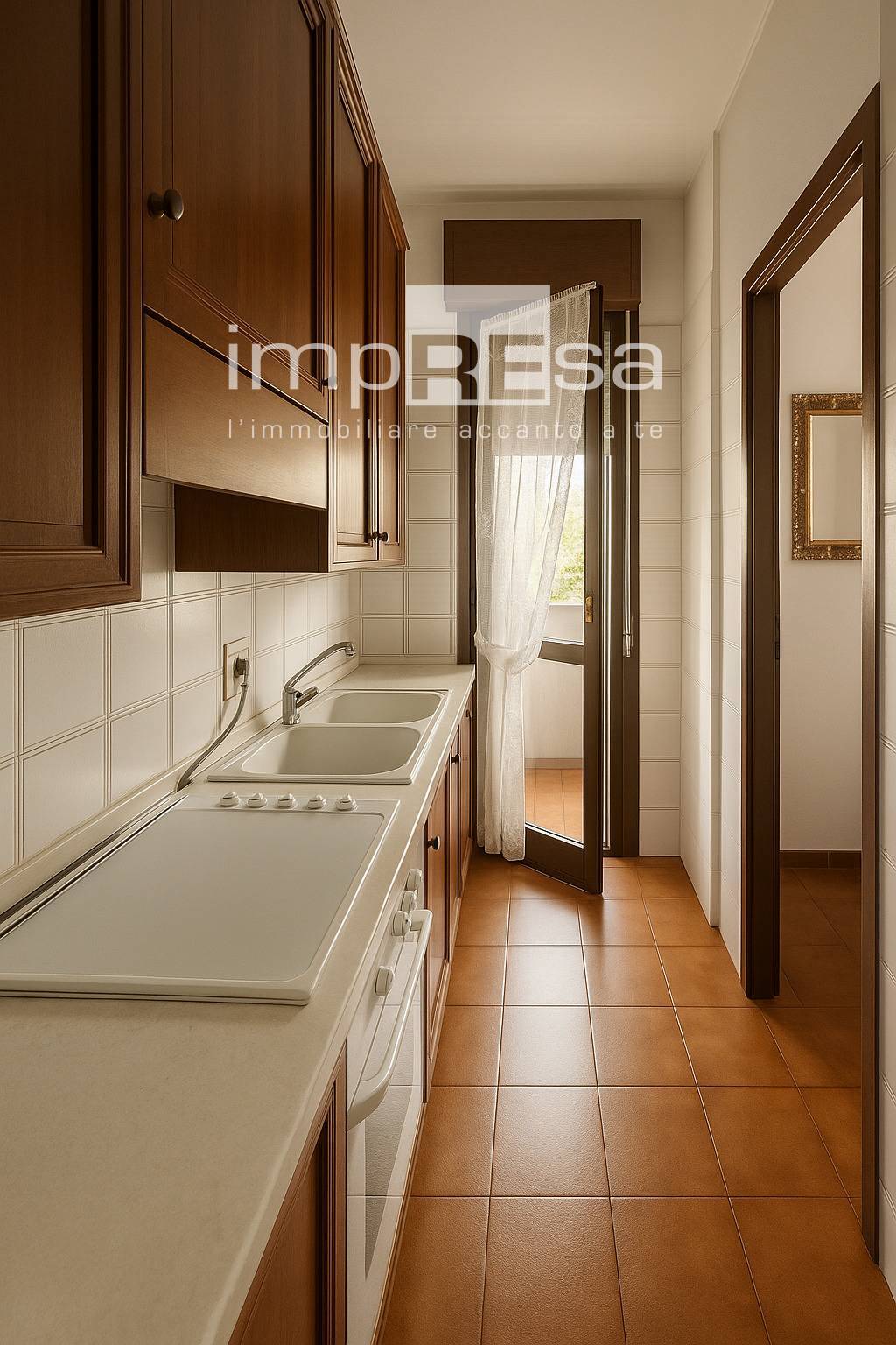 Mq. 80 netti composti da ingresso, soggiorno indipendente e cucinotto separato, lungo disimpegno, bagno ampio con vasca, camera singola e camera matrimoniale.