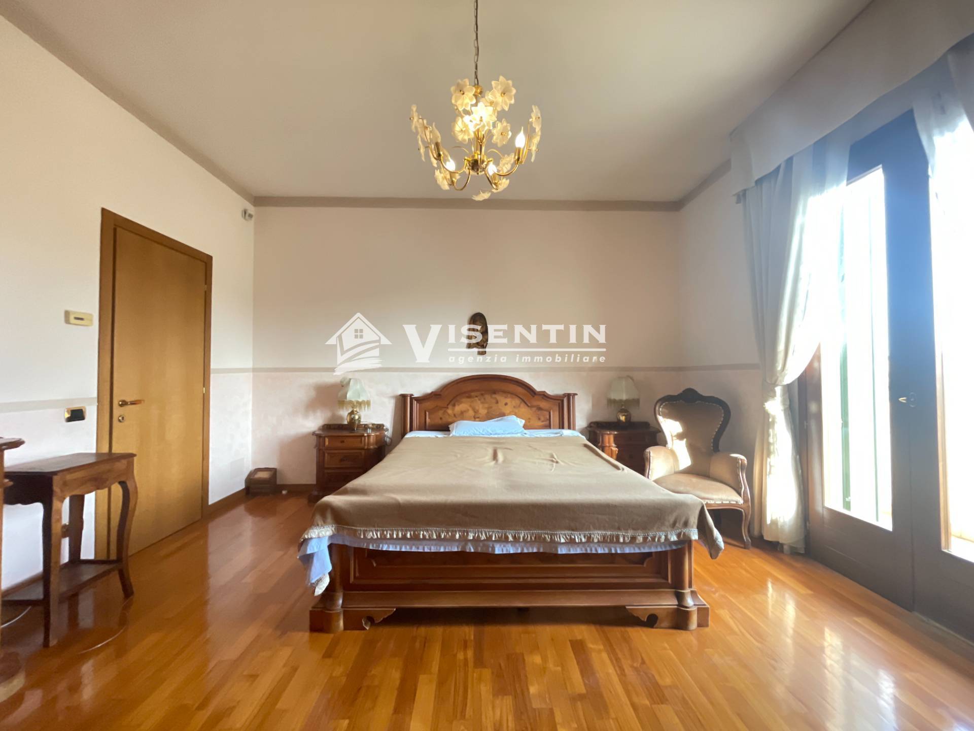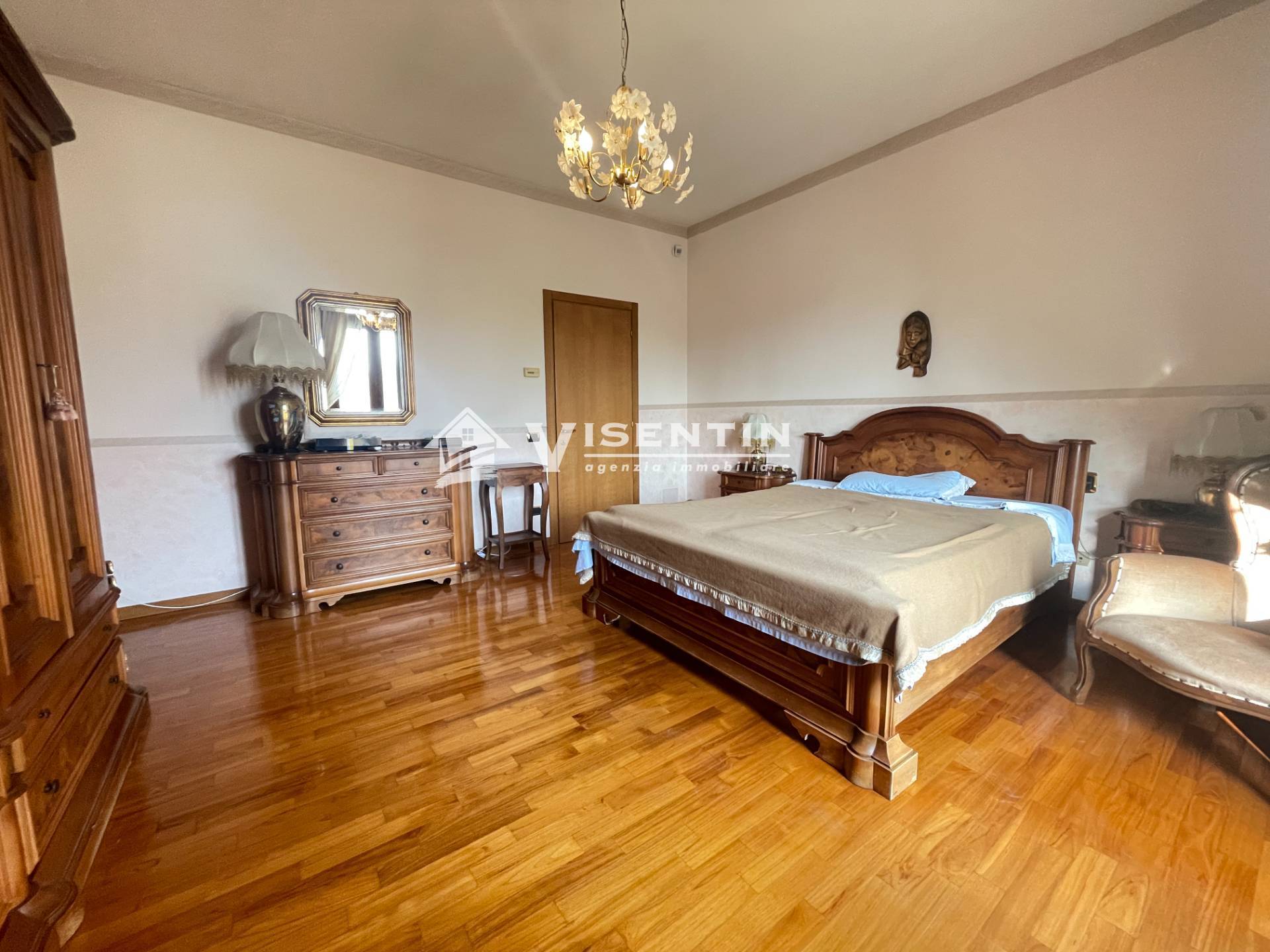 Ingresso indipendente per questo appartamento che occupa l'intero piano, dal giardino privato dove poter parcheggiare diverse auto, si accede alla scala autonoma che conduce all'abitazione.