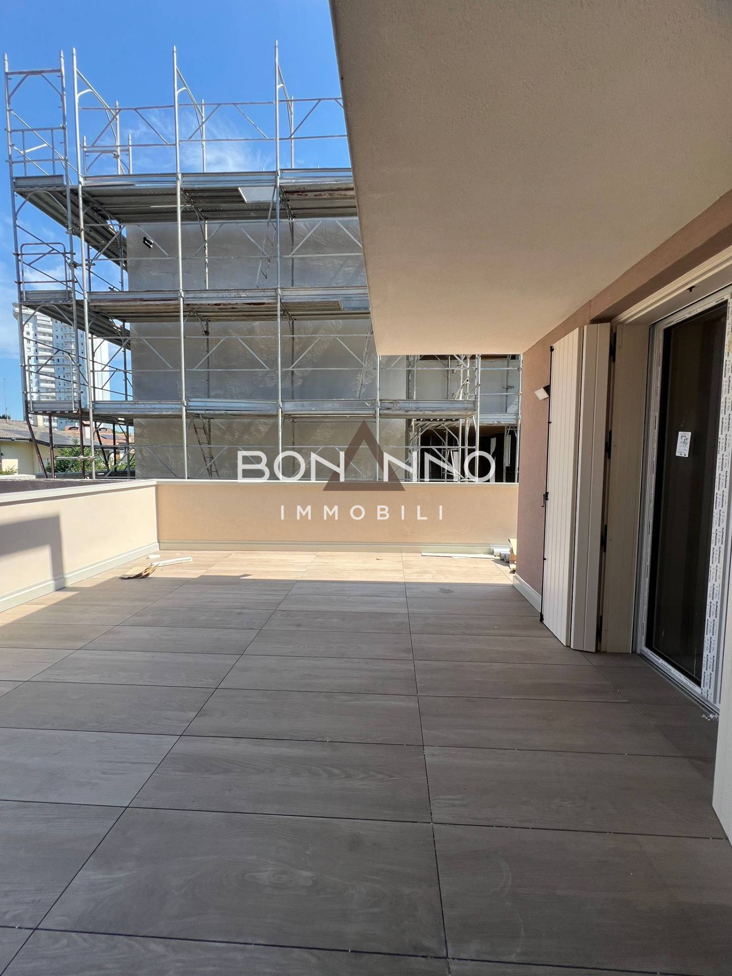 Bonanno Immobili propone in vendita appartamento di nuova costruzione, situato al piano primo con ampia terrazza abitabile di circa 100 mq. L'immobile si compone di ingresso su ampio e luminoso soggiorno con cucina open-space, disimpegno, due bagni, camera matrimoniale, camera doppia e camera singola.