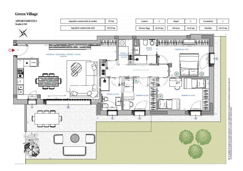 Nella prima periferia cittadina, proponiamo in vendita splendido appartamento posto al piano terra di un moderno e stiloso contesto condominiale in fase di costruzione, con consegna prevista ottobre/novembre 2025. L'immobile cosi' distribuito: zona giorno/pranzo con angolo cottura di oltre 40 mq, disimpegno, tre camere letto di cui la principale con bagno personale, secondo bagno, ripostiglio/lavanderia.