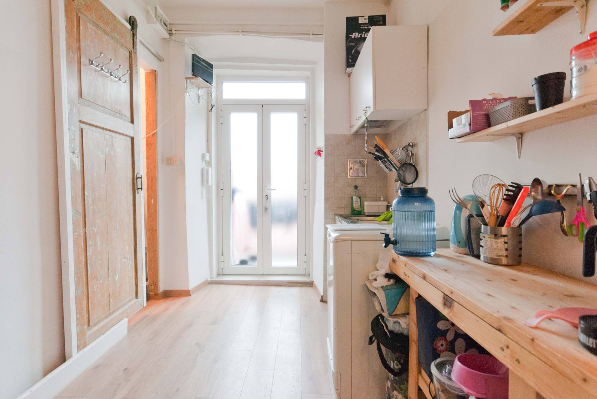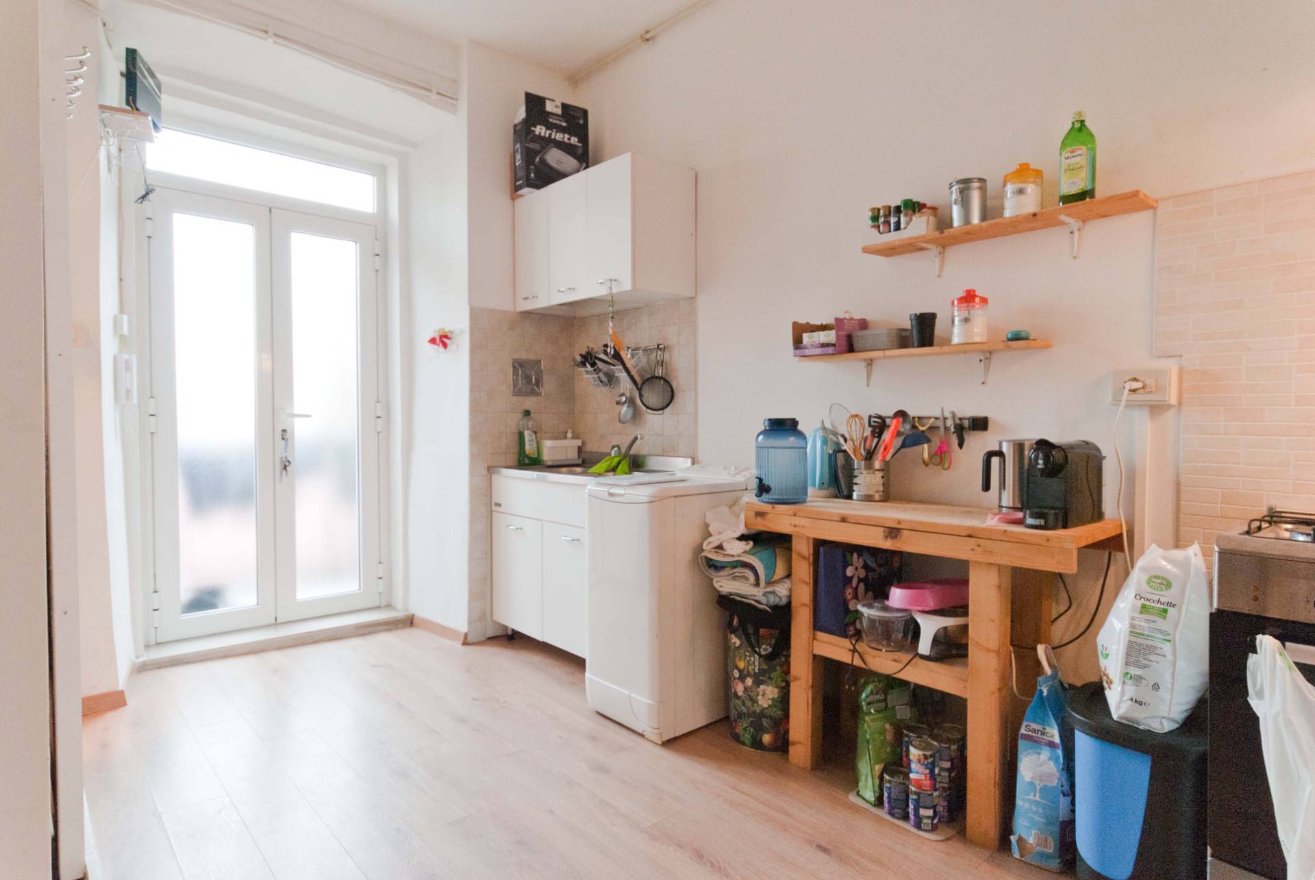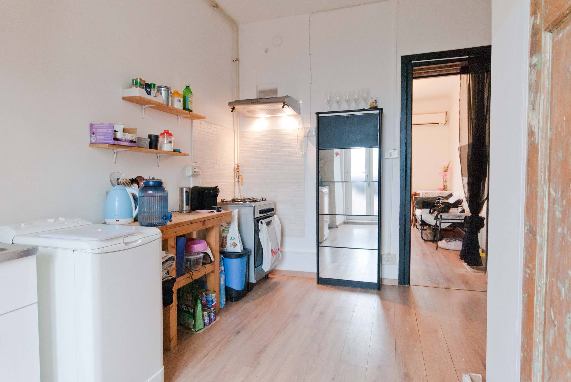 Al monolocale si accede da una balconata esterna, si entra direttamente in cucina, alla destra il bagno completo e finestrato e poi si accede alla camera da letto-soggiorno.