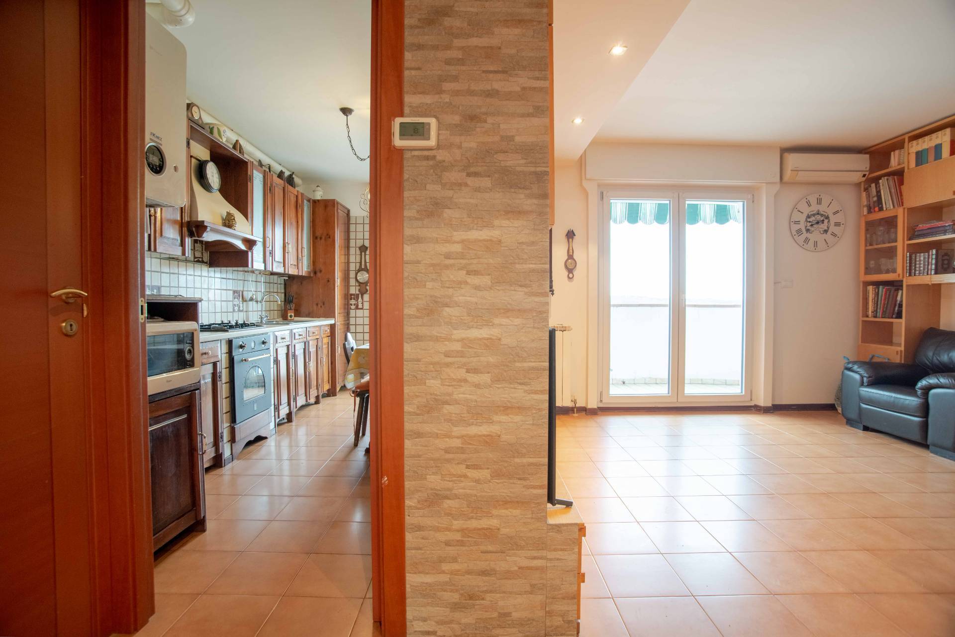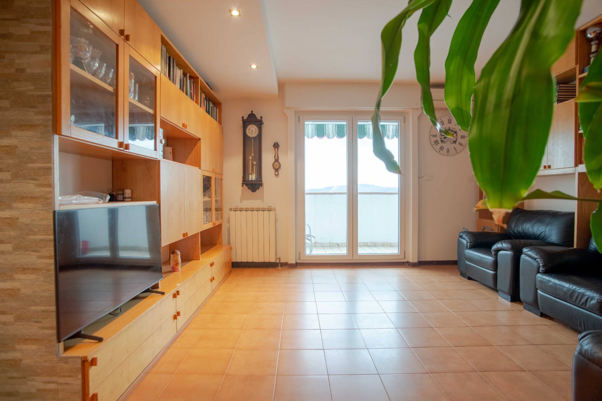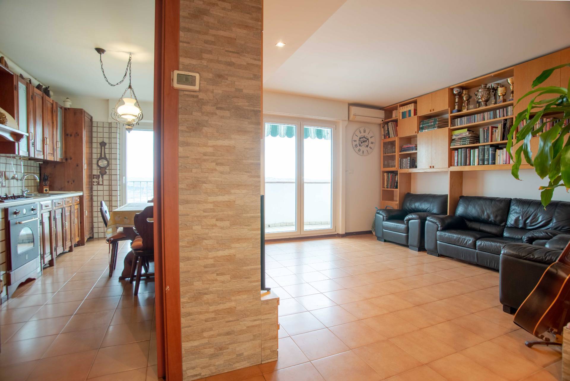 Tutti gli ambienti sono luminosi e ben distribuiti, grazie alla presenza di ampie finestre, con recenti serramenti in pvc e vetrocamera, che offrono una piacevole vista dall'alto sulla citt e il mare. L'immobile in ottime condizioni e nel tempo stato oggetto di ammodernamenti, come per esempio l'installazione di un sistema di condizionamento, di un cappotto interno sulle pareti confinanti, il rifacimento del bagno e il montaggio di una porta blindata.