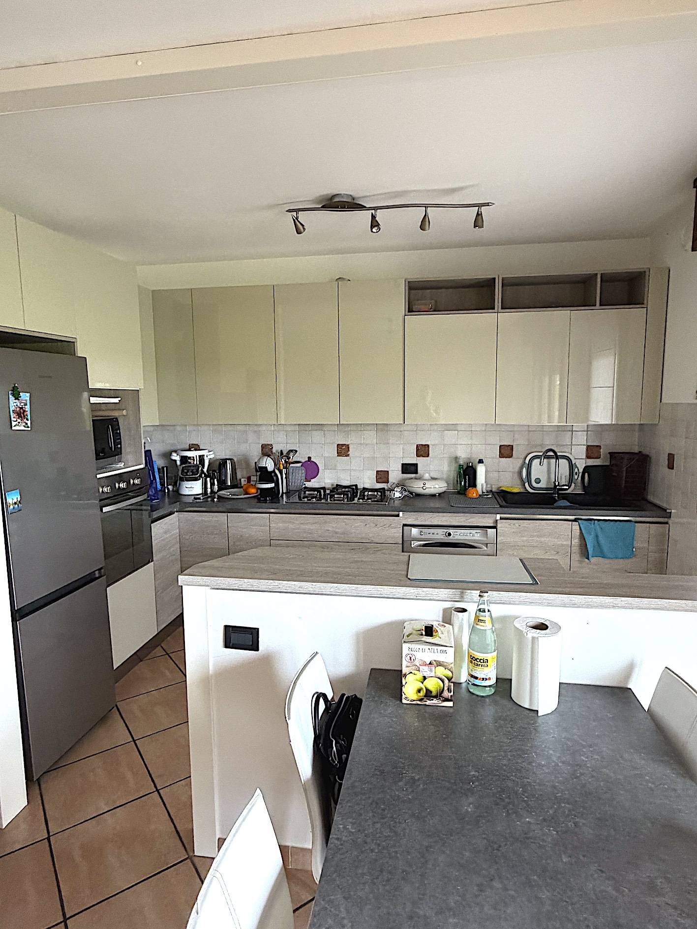 Dalla scala condominiale ampia e luminosa accediamo al piano primo (di mq. 90), dove dalla porta blindata entriamo nel soggiorno di buone dimensioni con una grande vetrata finale dove si trova la terrazza abitabile con vista sulle montagne, sempre in fondo, ma a sinistra del soggiorno, a vista, posizionata la cucina ad "elle", con arredo recente, (viene venduta insieme all'appartamento); tornando all'ingresso, a sinistra accediamo al corridoio della zona notte dove posizionato un armadio a muro, di fronte al quale troviamo il primo bagno/lavanderia, a seguire la camera matrimoniale, il secondo bagno finestrato con vasca, e infine la seconda camera, di buone dimensioni; sempre dal soggiorno prendendo la scala in legno a vista arriviamo in mansarda (di mq. 68) dove troviamo sulla sinistra il terzo bagno con doccia e velux e frontalmente il pezzo forte della casa, un ampio vano aperto adatto a molteplici usi, terza camera, studio, palestra, zona svago; volendo anche divisibile in due stanze in quanto in fondo alla stessa sono presenti due porte finestre, oltre ad un velux, per accedere alla terrazza della mansarda con ai lati due comodissimi ripostigli.