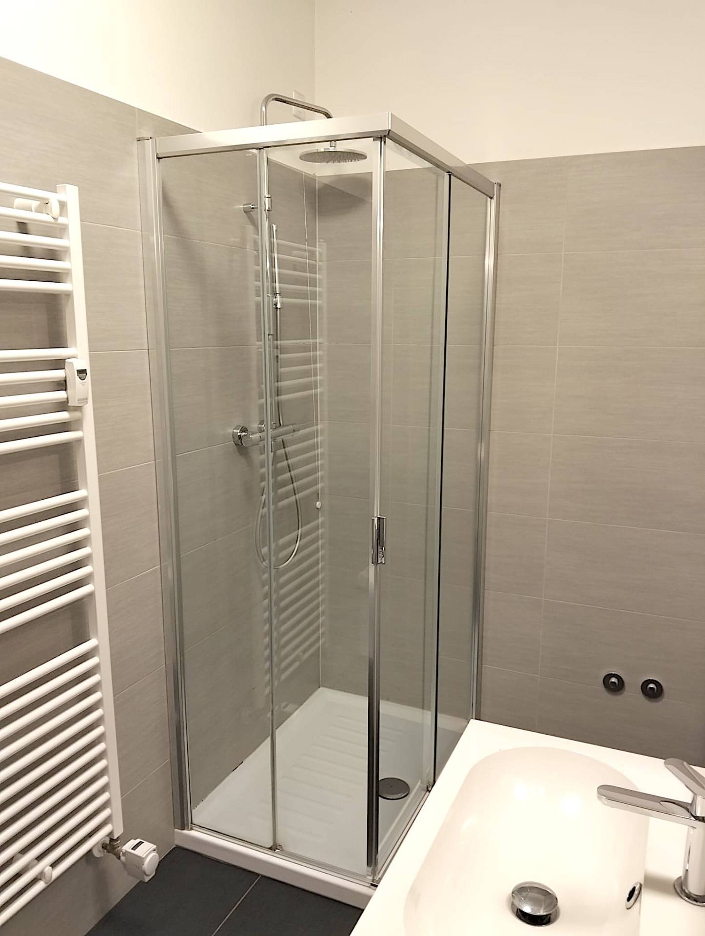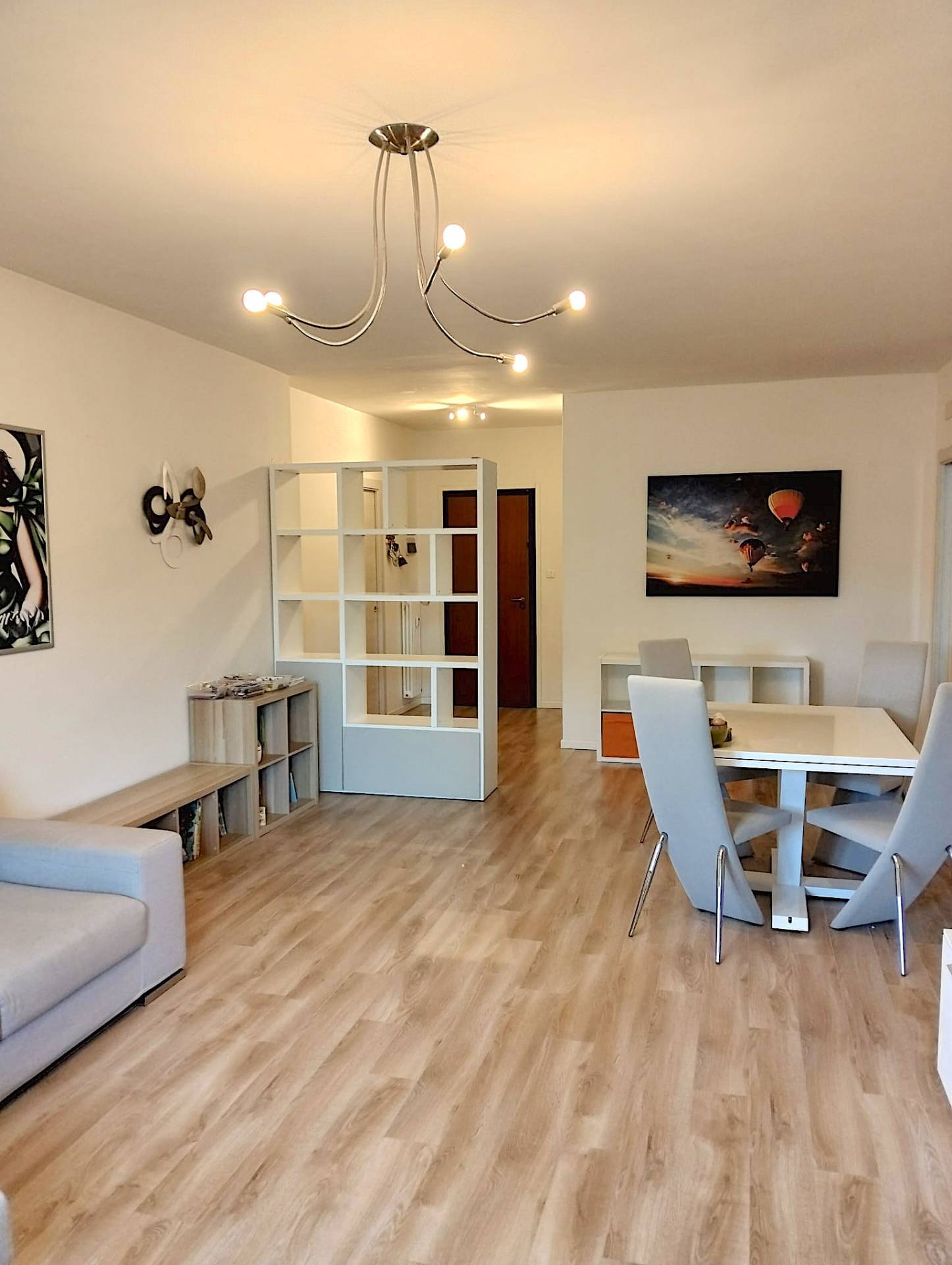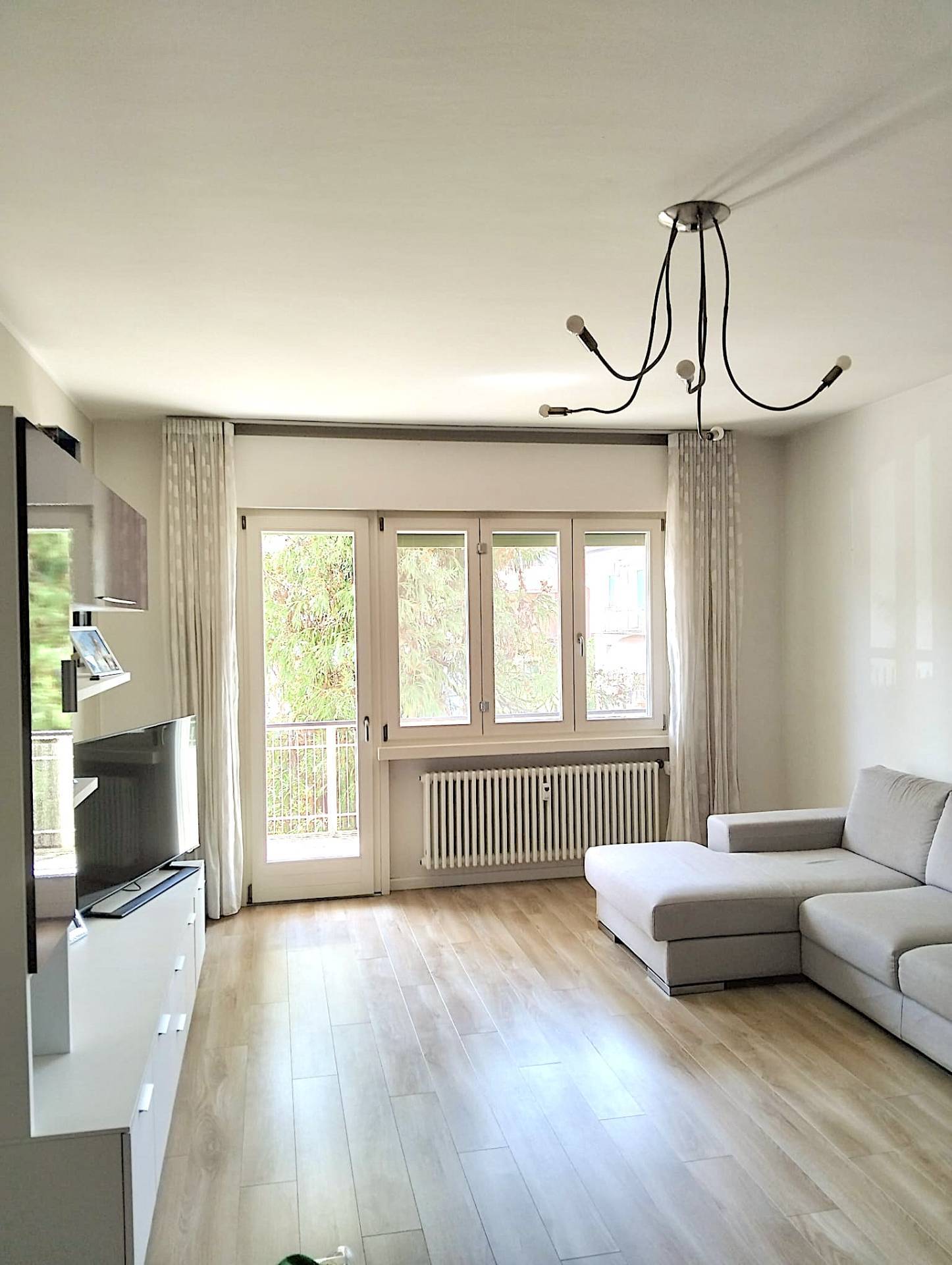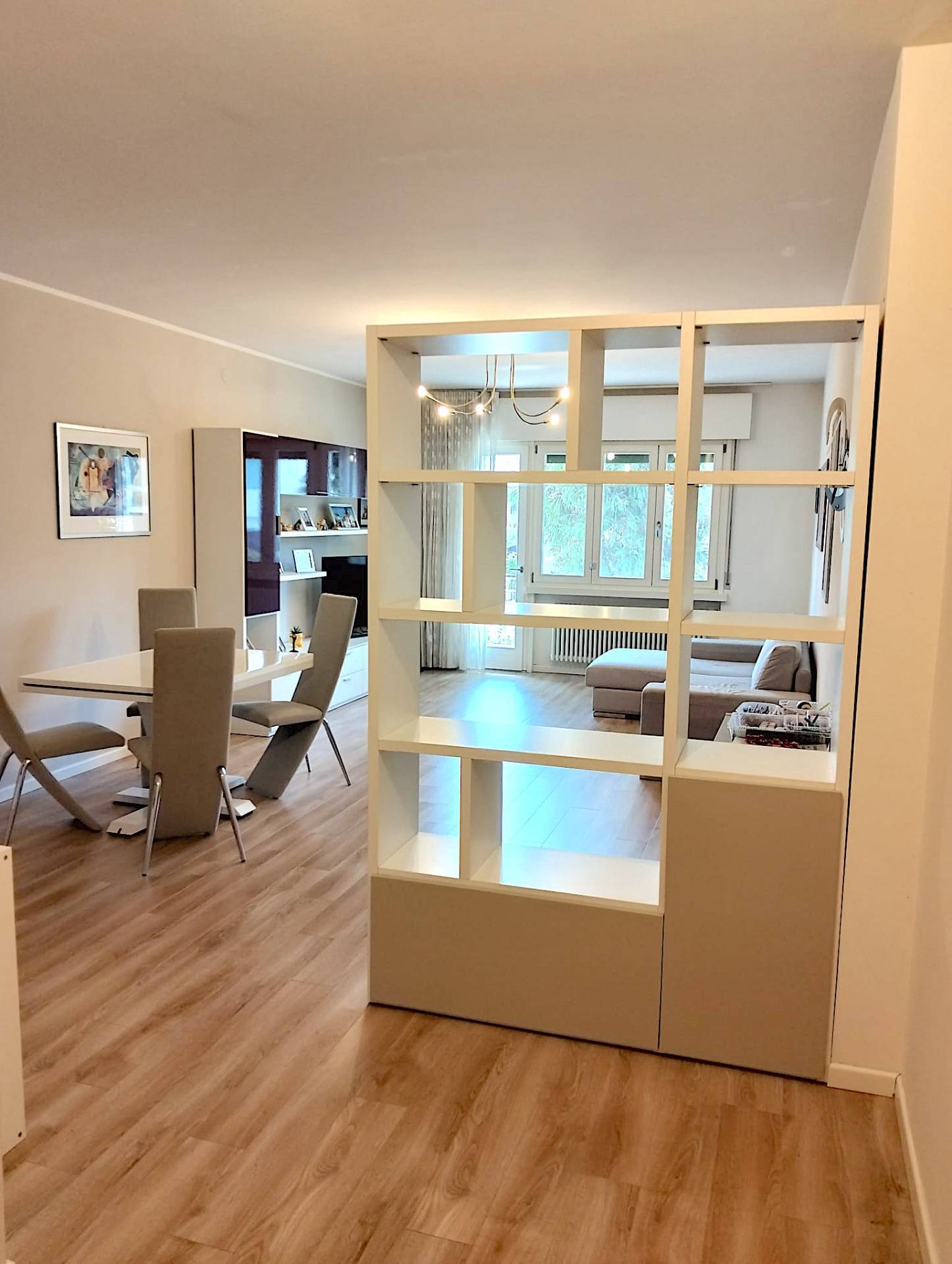 L'appartamento di mq. commerciali 123, di conformazione classica, si compone da un ingresso con vista diretta sull'ampio luminoso soggiorno con accesso sulla terrazza posta a sud/ovest, alla destra dell'ingresso troviamo la porta per accedere alla cucina abitabile con la sua terrazza, mentre sulla sinistra il bagno di servizio con doccia; dal soggiorno entriamo nel corridoio della zona notte dove in senso orario abbiamo la camera doppia con la veranda/lavanderia, il bagno principale finestrato con vasca, la camera/studio ed infine la camera matrimoniale.