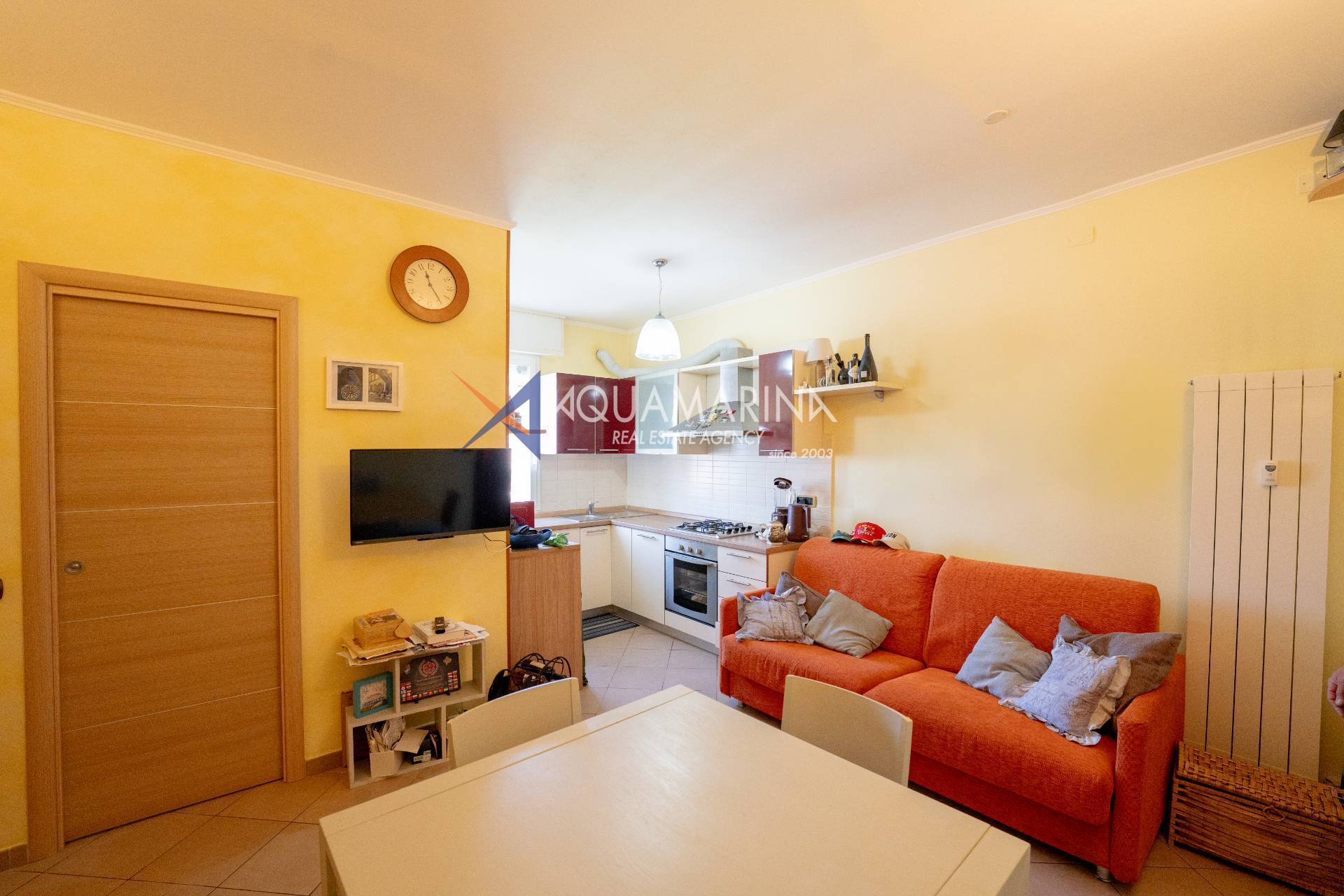 L'immobile composto da un soggiorno con cucina a vista, una camera da letto e un bagno.