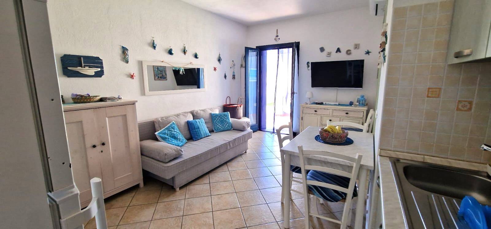 L'immobile dispone di una camera da letto matrimoniale, un bagno, una luminosa zona giorno con angolo cottura, avente accesso diretto alla veranda coperta e al giardino privato, dove poter mangiare e ammirare fantastici tramonti in totale relax e privaci.