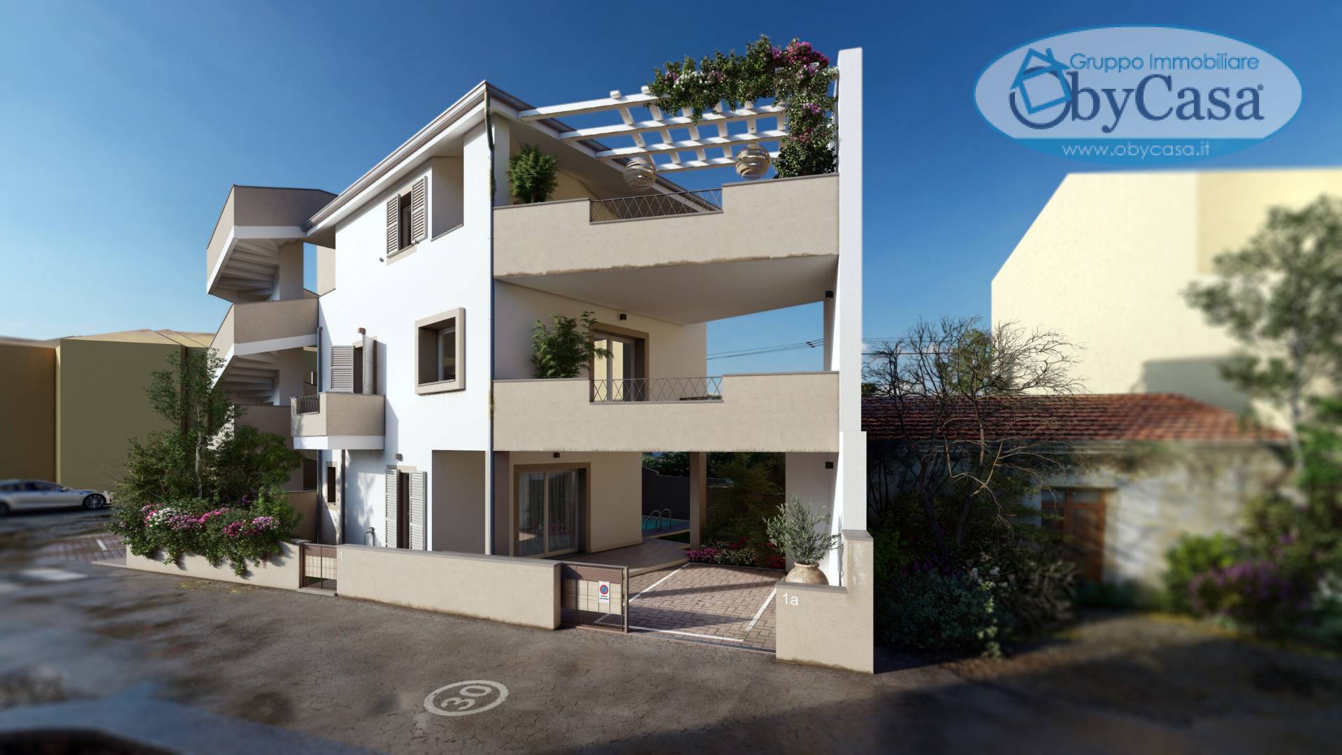 ObyCasa Franchising Immobiliare propone in vendita Nuove Costruzioni in piccolo ed elegante complesso residenziale in Classe A. Sar suddiviso in 1 unico blocco da sole 4 unit abitative, dotate di spaziose terrazze o giardino con piscina privata.