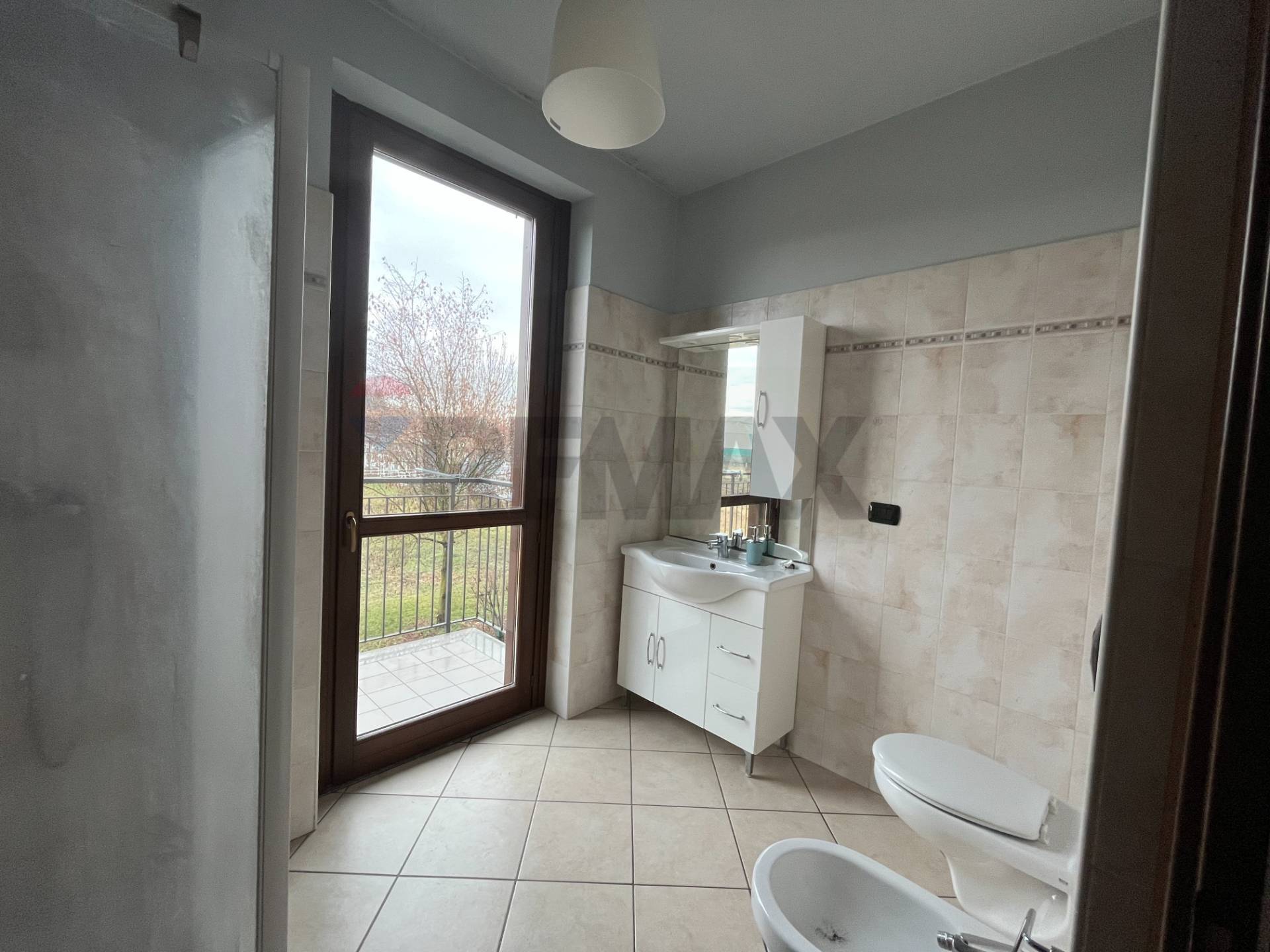 Il bagno, luminoso grazie alla porta finestra con accesso al balcone, ben arieggiato e funzionale.