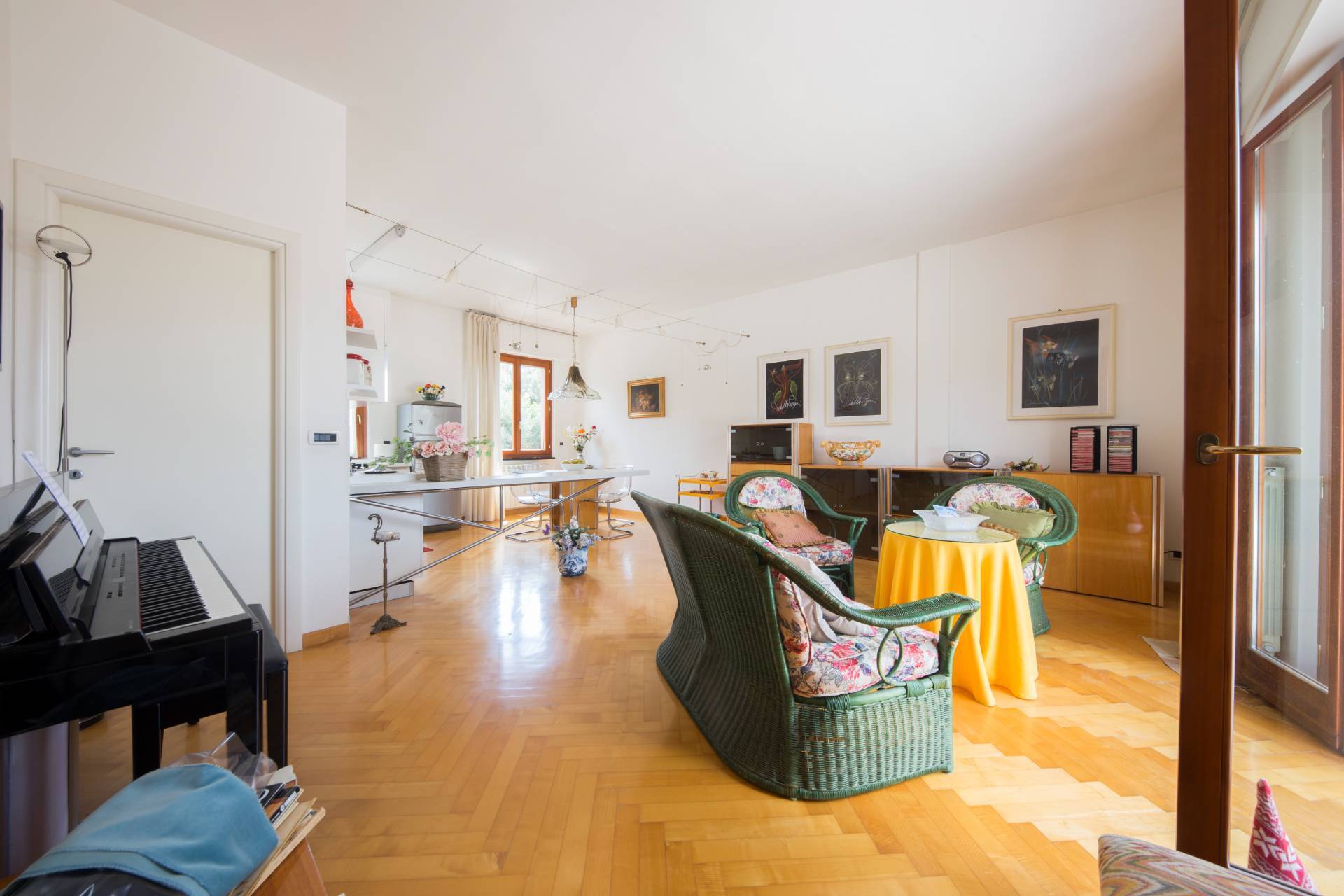 La zona giorno composta da un angolo cottura aperta sulla zona living, una sala che risulta essere molto luminosa con accesso al terrazzo,luogo ideale per momenti di relax in famiglia o per ospitare amici e parenti.