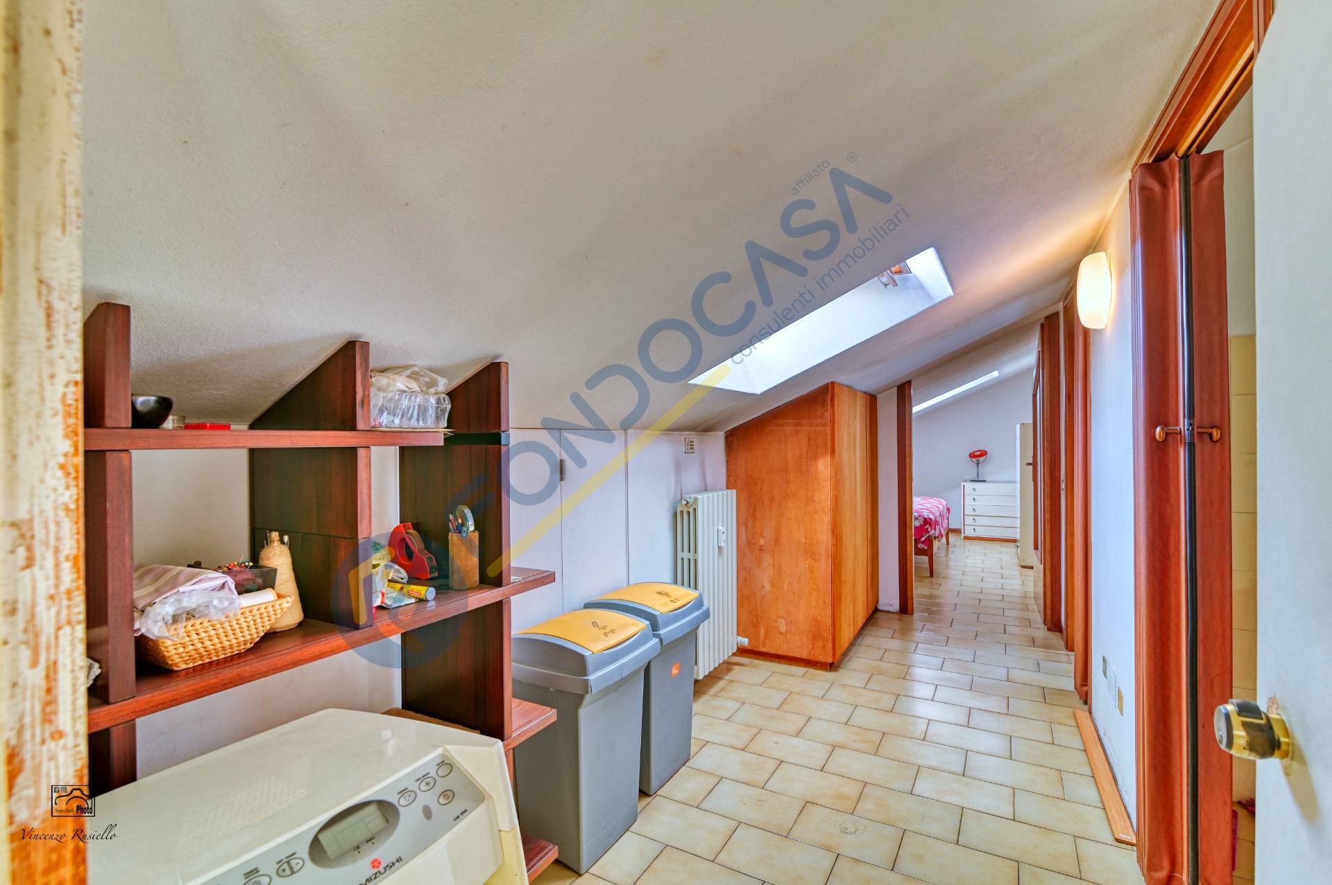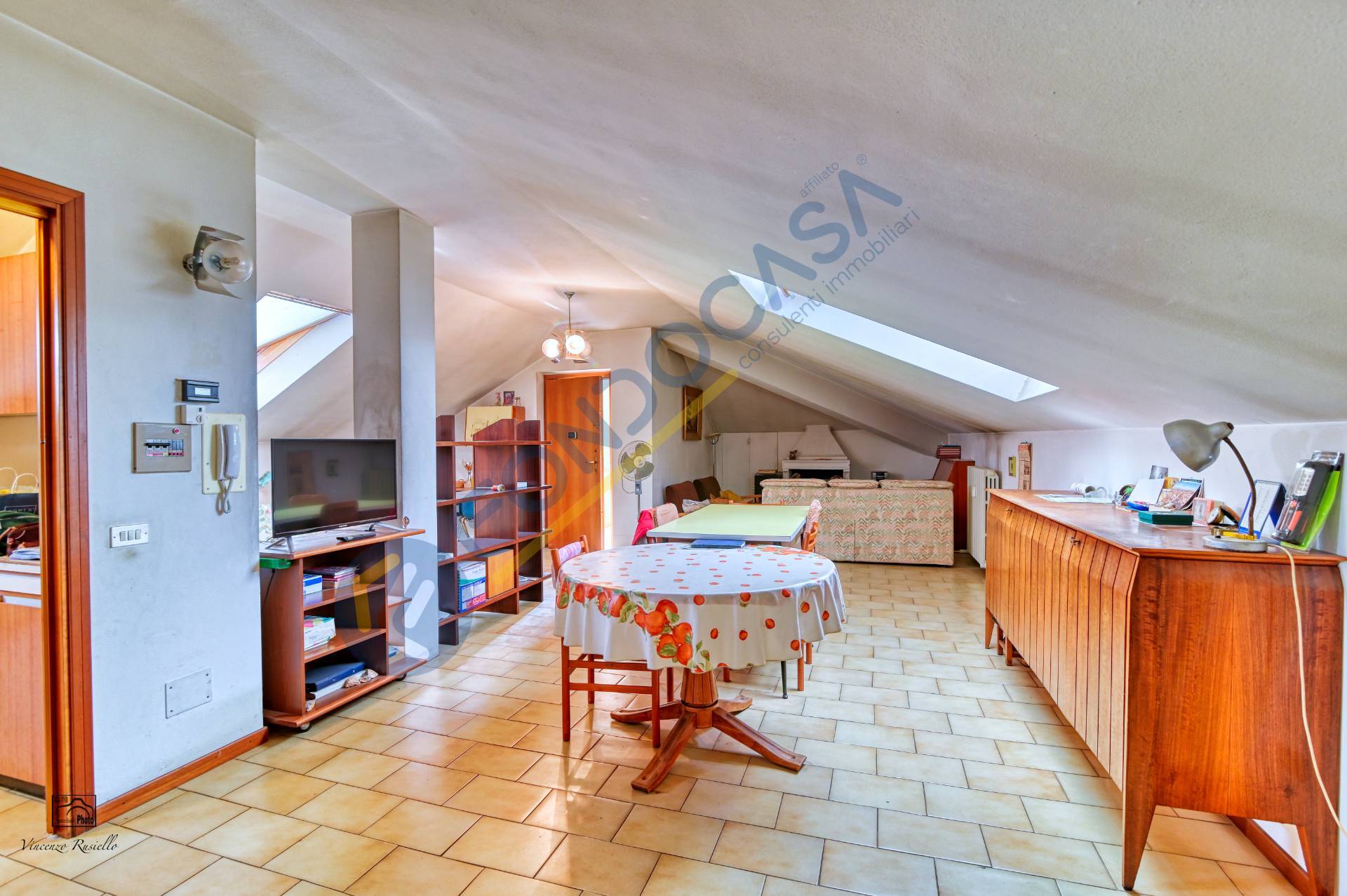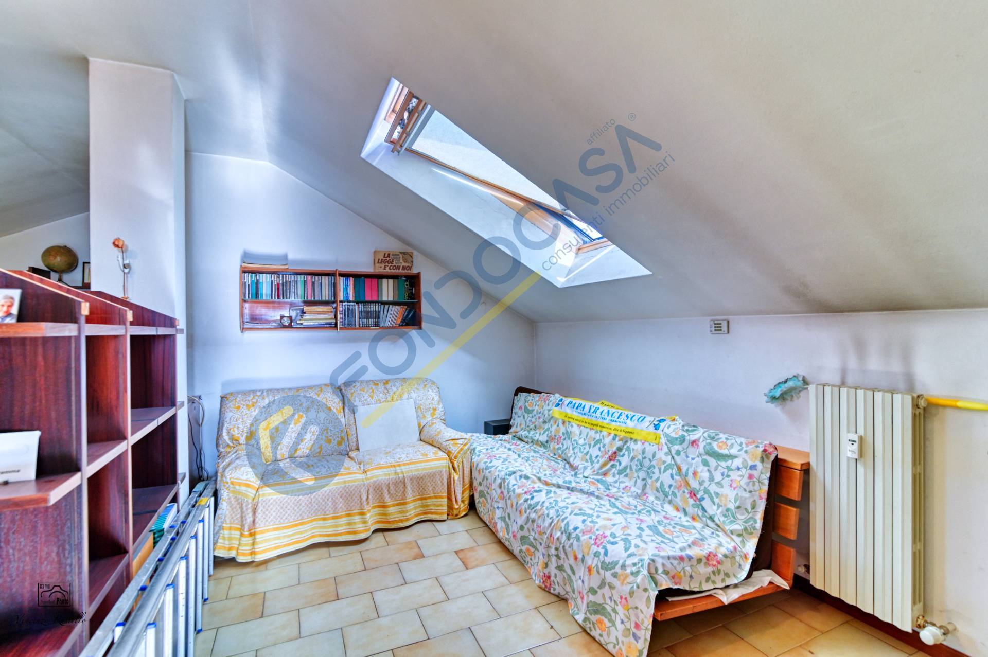 La pavimentazione in ceramica in tutta la soluzione, gli infissi sono velux automatizzati con doppio vetro.
