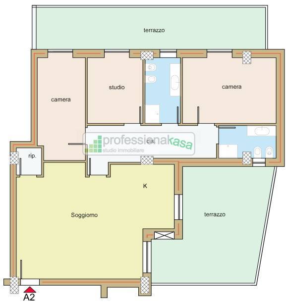 vnc2002 - nei pressi delle poste centrali, proponiamo appartamento di c.a. 110 mq. a piano terra composto da soggiorno con zona cucina, tre camere, due bagni, ripostiglio e due terrazzi, per c.a. 48 mq. totali.