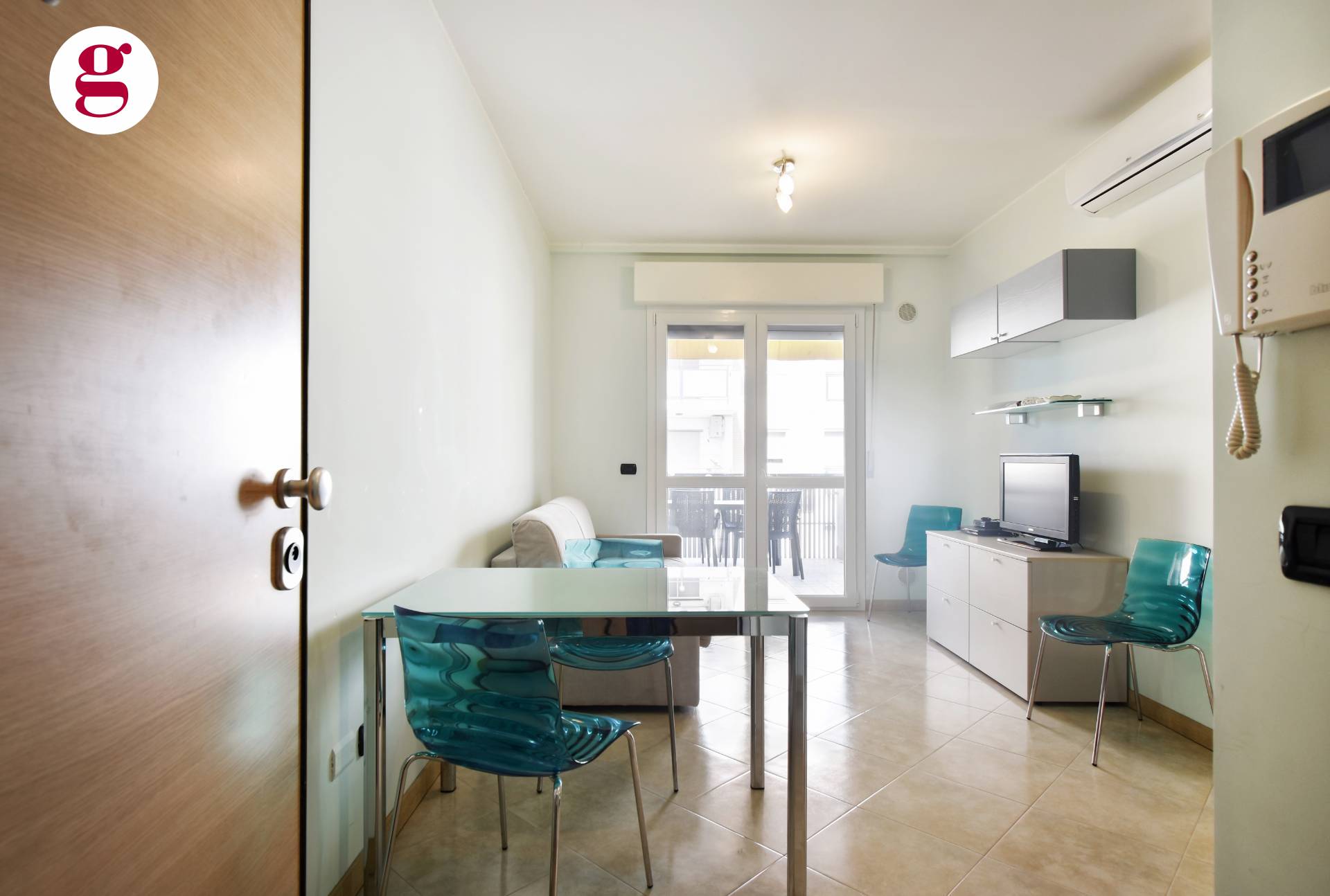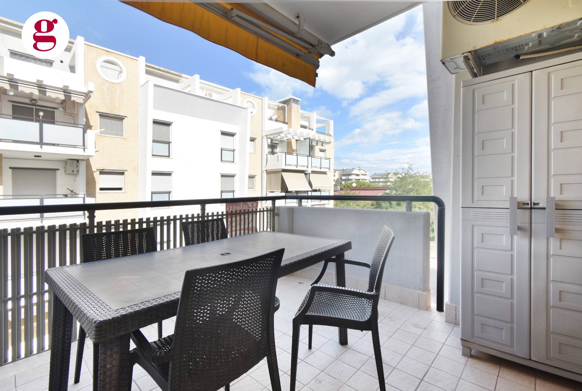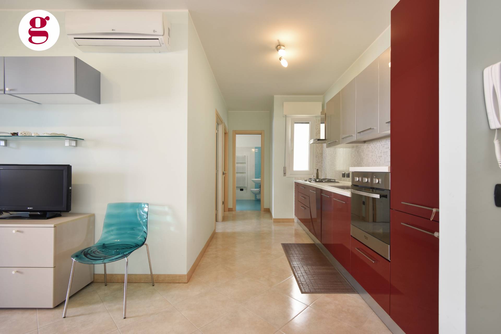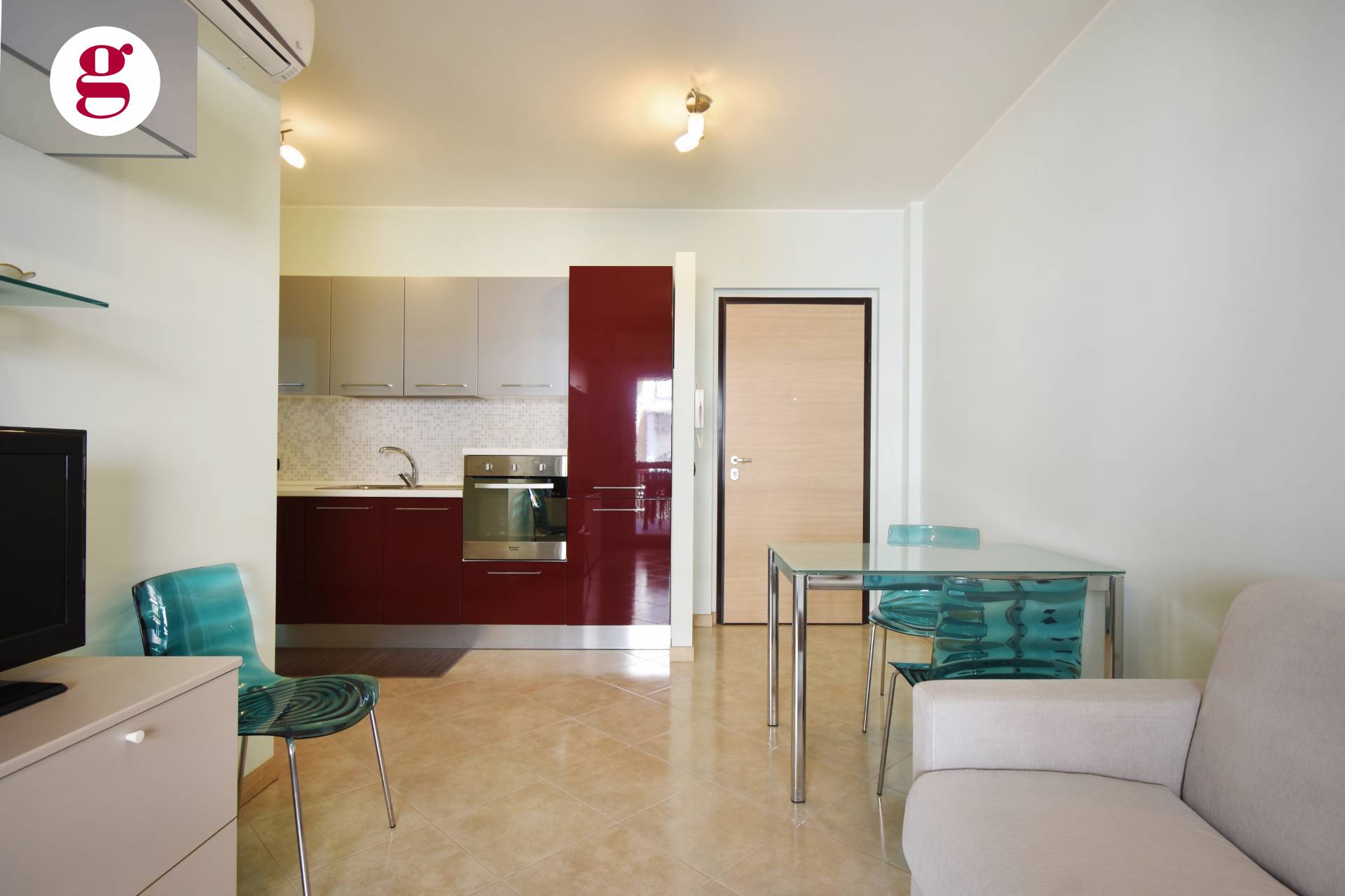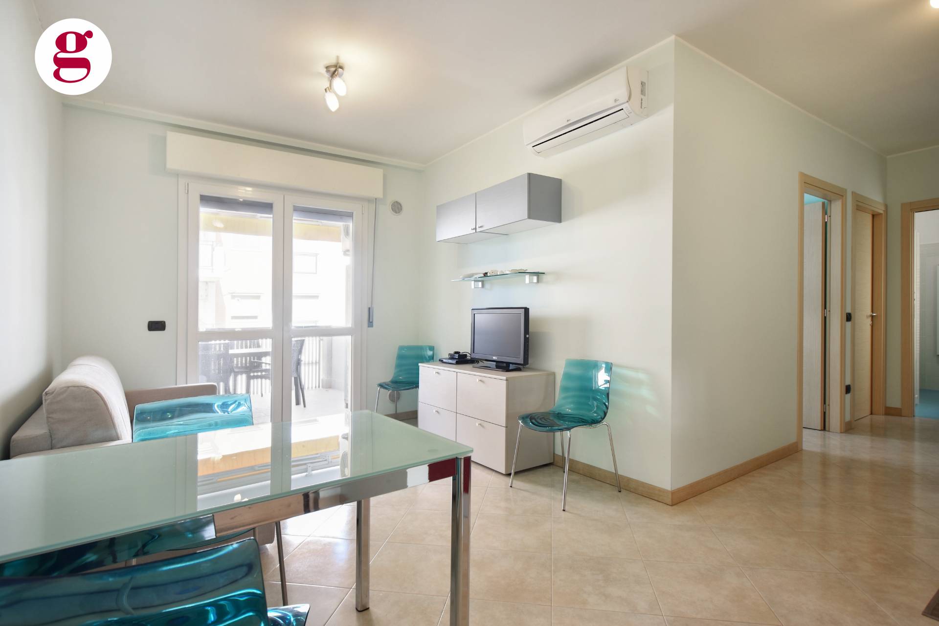 Composto da ingresso su soggiorno con angolo cottura dotato di tutti gli elettrodomestici, una camera matrimoniale, una cameretta e bagno con finestra e doccia e balcone da 10 mq. Split per aria calda/fredda presente in ogni camera.