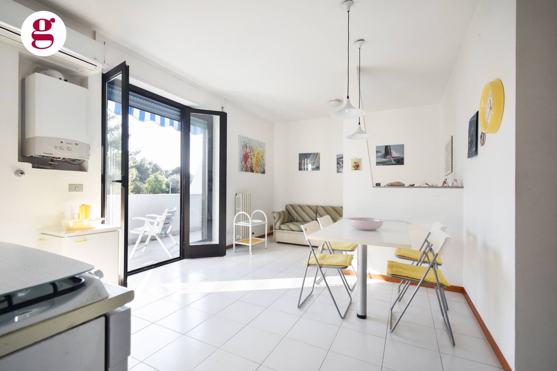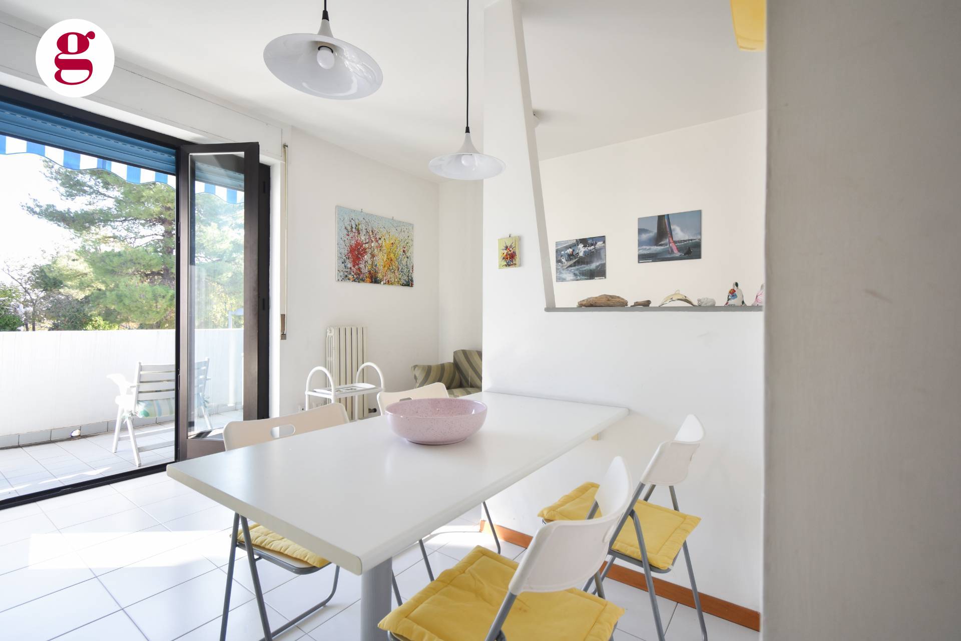 Dal soggiorno si accede al terrazzo con piacevole vista mare, ideale per momenti di relax allaperto.