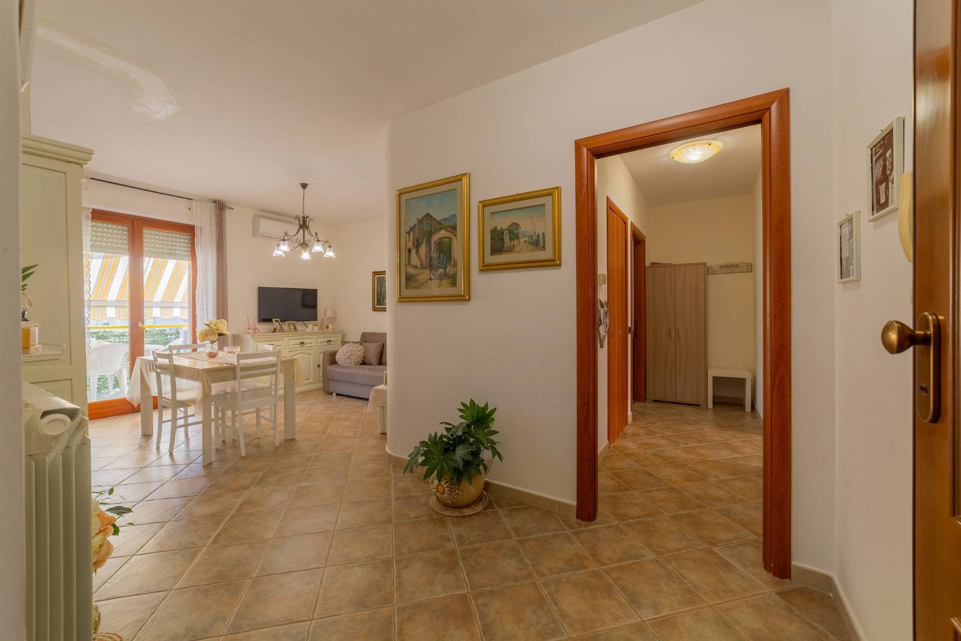 Questa splendida soluzione, posta al primo piano, composta da : - Ampio soggiorno con cucina a vista, - Comoda camera da letto matrimoniale, - Camera singola, - Bagno padronale, - Bagno di servizio con lavanderia - Due balconi.