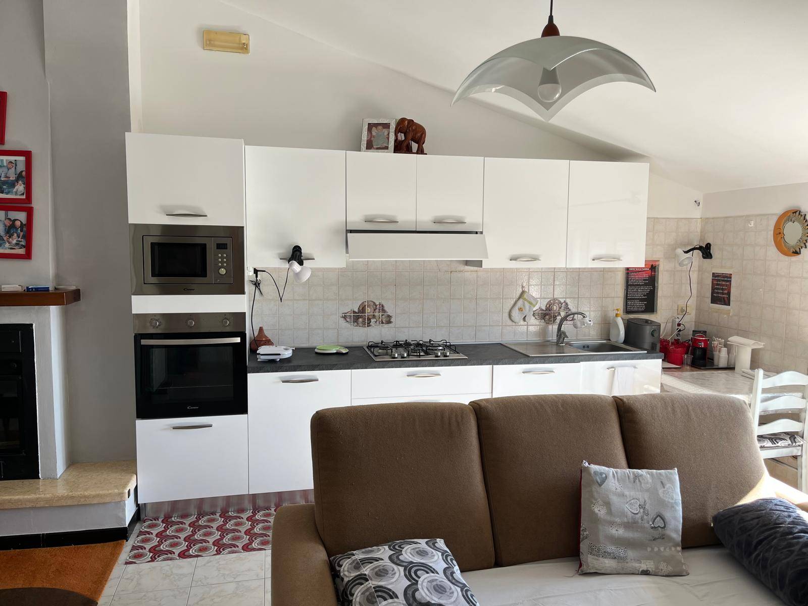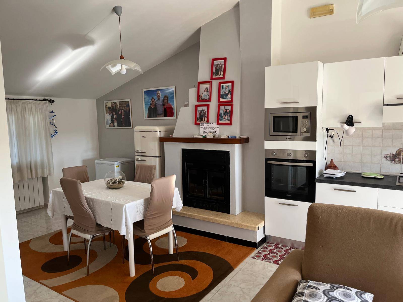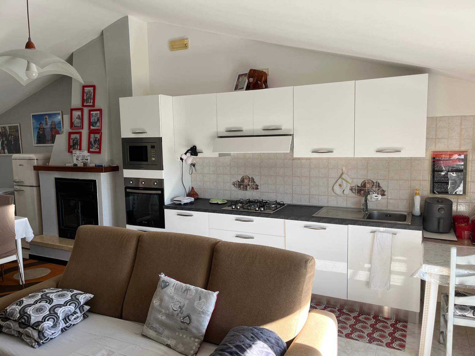 Aprendo la porta d'ingresso vieni accolto in un bel soggiorno di 30 mq. circa con la cucina a vista e un bellissimo camino, l'ideale se ami la compagnia del fuoco durante l'inverno.