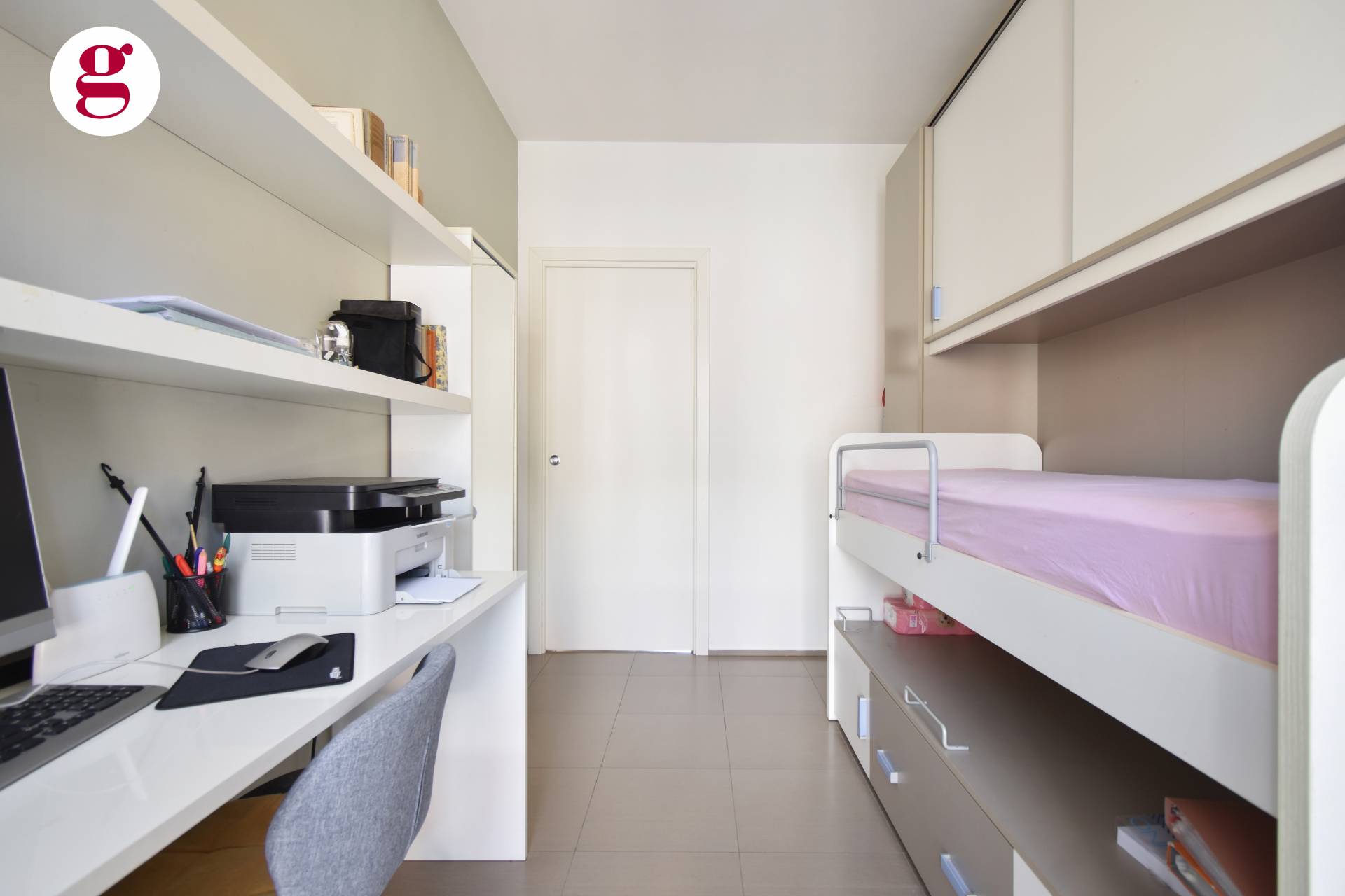 L'appartamento si apre su un soggiorno con angolo cottura moderno e conviviale, la zona notte composta da due camere da letto e un bagno funzionale.