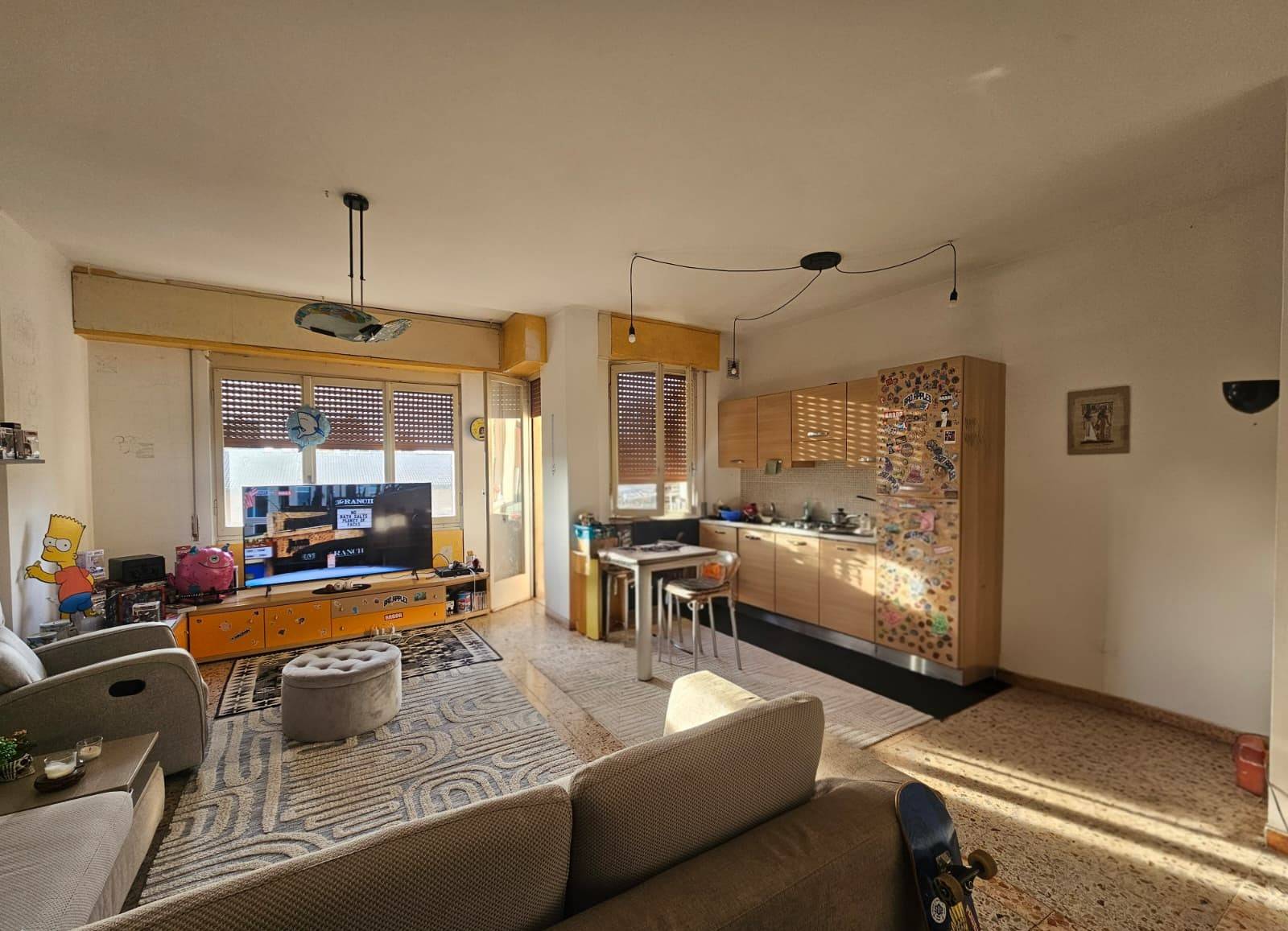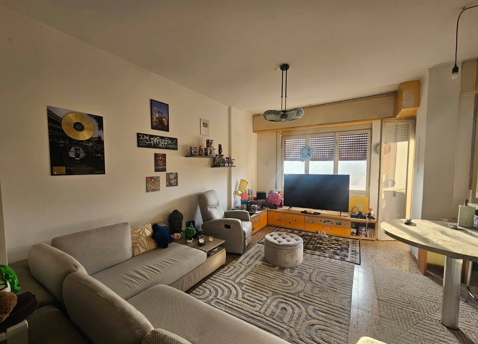 Lingresso si apre su una confortevole zona living con soggiorno e cucina a vista, impreziosita da una pratica penisola che rende lo spazio funzionale e accogliente.