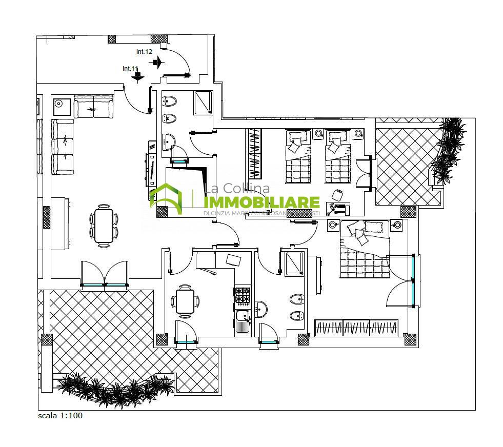 L'immobile proposto ha una superficie di mq 100 ca e si compone di soggiorno, cucina abitabile, camera matrimoniale, cameretta, doppi servizi.