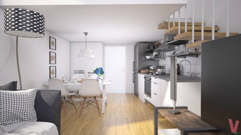 Subito veniamo accolti da un GRANDE TERRAZZO PORTICATO di ben 23mq che ci preannuncia l'ingresso nella casa. La porta blindata si apre su un SUGGESTIVO soggiorno con cucina a vista: UN LIVING DAVVERO MOZZAFIATO arricchito da un AFFASCINANTE DOPPIO VOLUME prodotto dalle TRAVI A VISTA ALTE oltre 6 metri con il MERAVIGLIOSO primo piano con effetto SOPPALCO a vista sul soggiorno.. questo ambiente rende tutta la zona giorno MODERNA E ARIOSA, e per di pi anche dotato di balcone! Degna di nota anche la la MAXI PORTA FINESTRA SCORREVOLE che dalla cucina si affaccia al terrazzo.