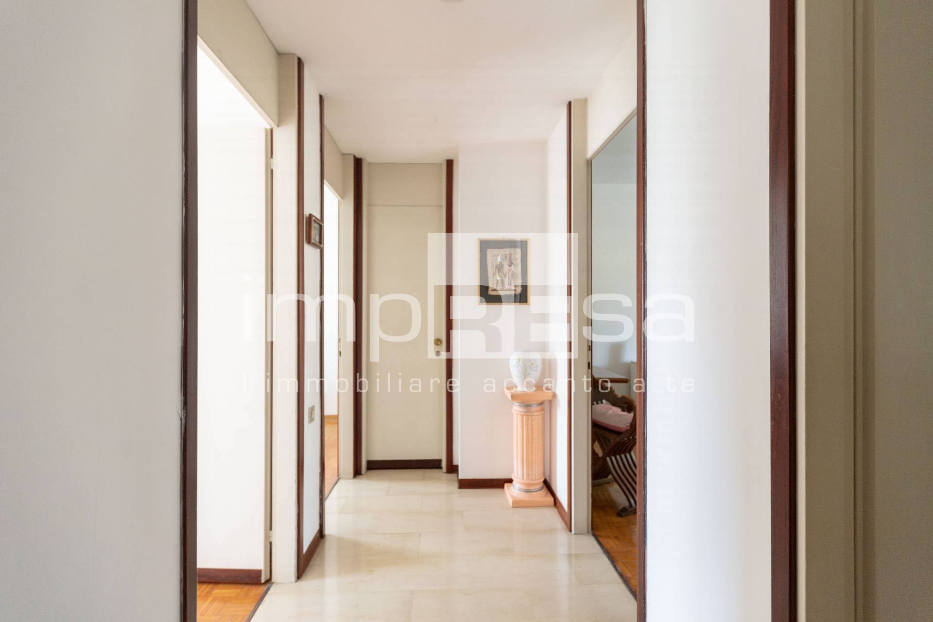 Lappartamento offre ambienti ariosi e armoniosi, arricchiti da terrazzi vivibili con affacci aperti e suggestivi: cucina abitabile con terrazzo vista Lido, ampio e luminoso soggiorno con terrazzo fronte strada, raffinata camera matrimoniale con terrazzo affacciato su Piazza Torta, oltre a una camera doppia e una camera singola con incantevole vista sul verde del parco.