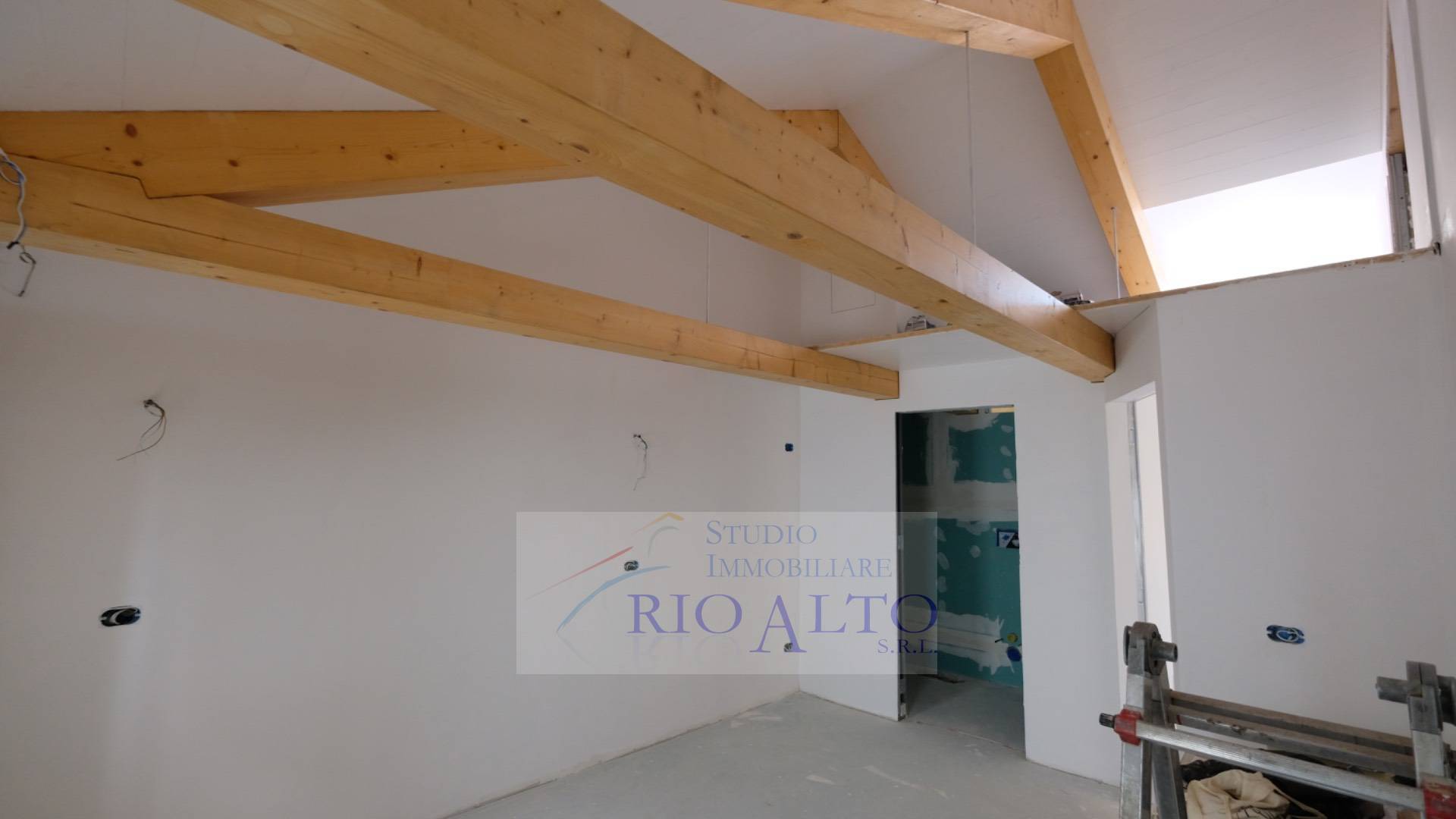 Tutto l'appartamento ha il tetto in legno, formato da n. 6 capriate in legno e tavole di abete rosso con il sotto catena posto ad una altezza di mt. 2,20 da pavimento finito ed il colmo interno della copertura posto ad una altezza di circa mt. 4,15 da pavimento finito.
