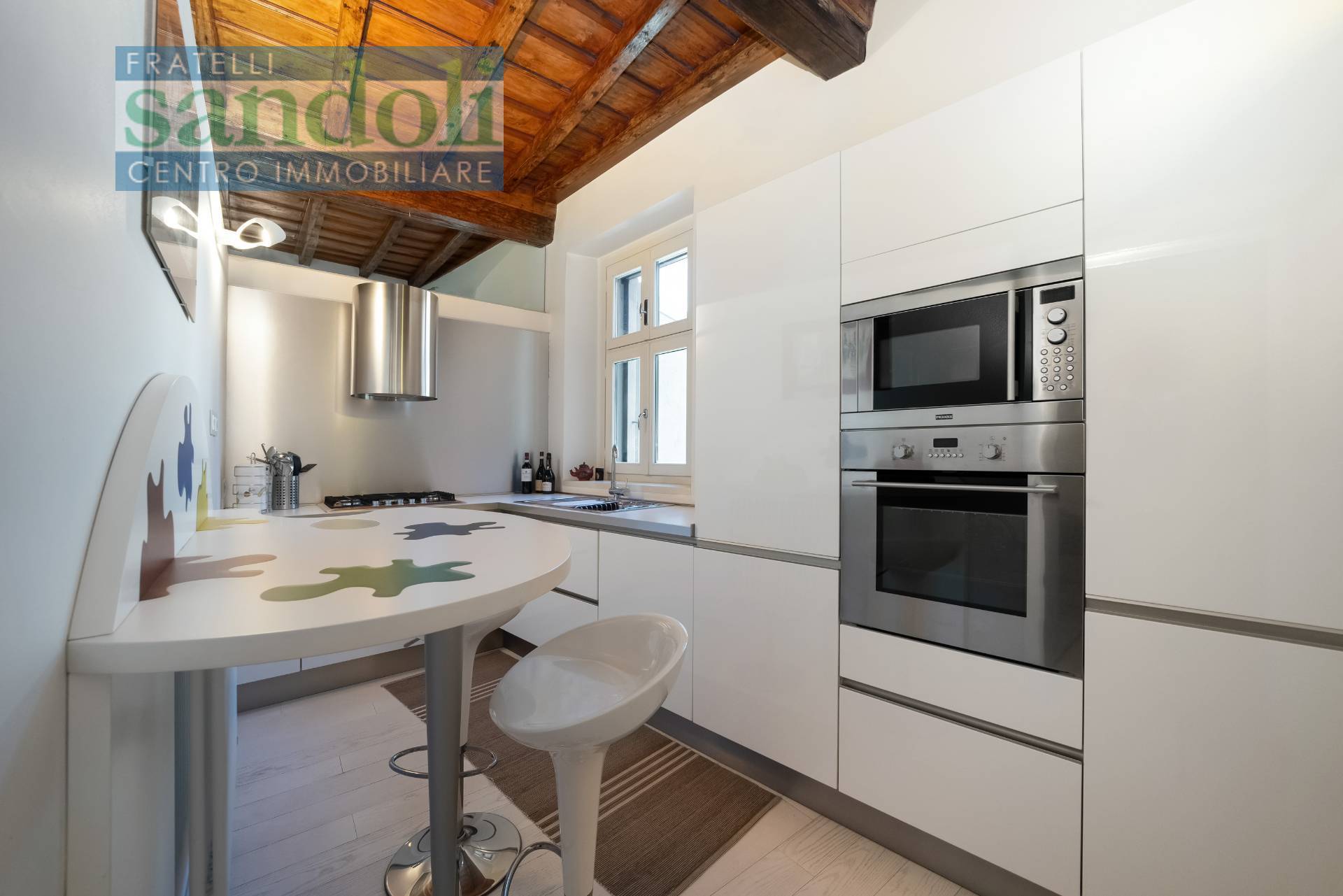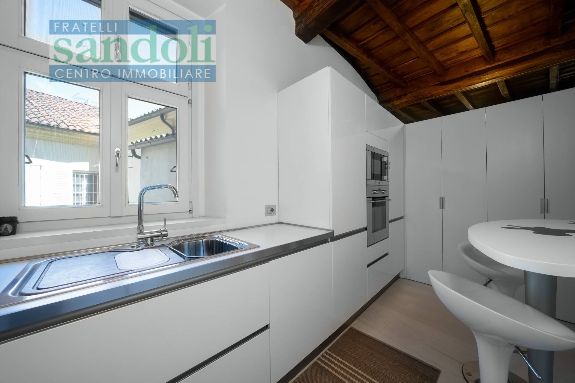 A fianco al soggiorno troviamo poi la cucina abitabile con finestra che affaccia nel cortile interno dello stabile, eccellente il recupero degli spazi abitativi al suo interno con la presenza di una comodissima zona lavanderia e locale caldaia a totale scomparsa.