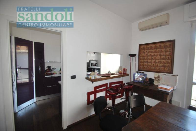 L'appartamento, situato in un contesto condominiale signorile, si trova al terzo piano ed composto da ingresso - ampio soggiorno con cucina a vista - studio - camera matrimoniale con bagno interno - cameretta - bagno con ampio box doccia.