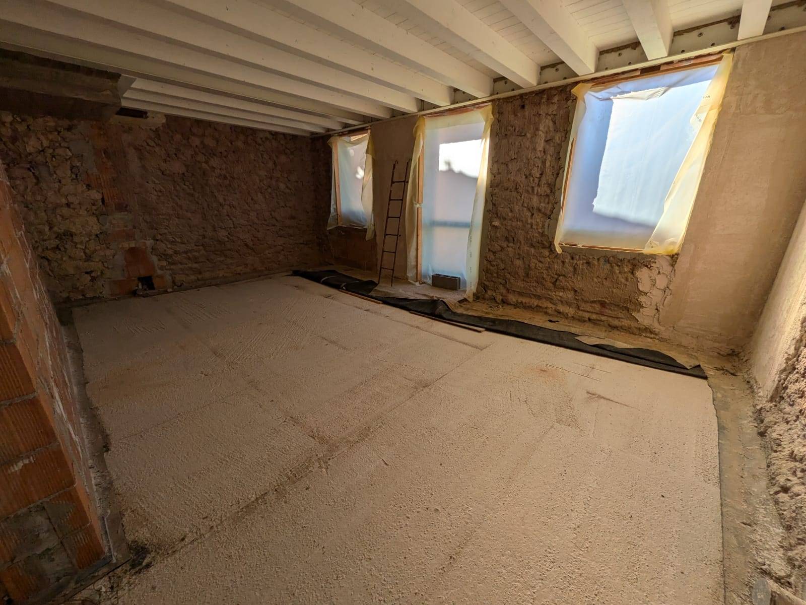 A destra, un altro ambiente al piano terra con tre finestre, personalizzabile in base alle necessit (studio, zona relax, camera ospiti, ecc.). Al piano primo, gli spazi permettono di ricavare una camera matrimoniale, una cameretta e un bagno.